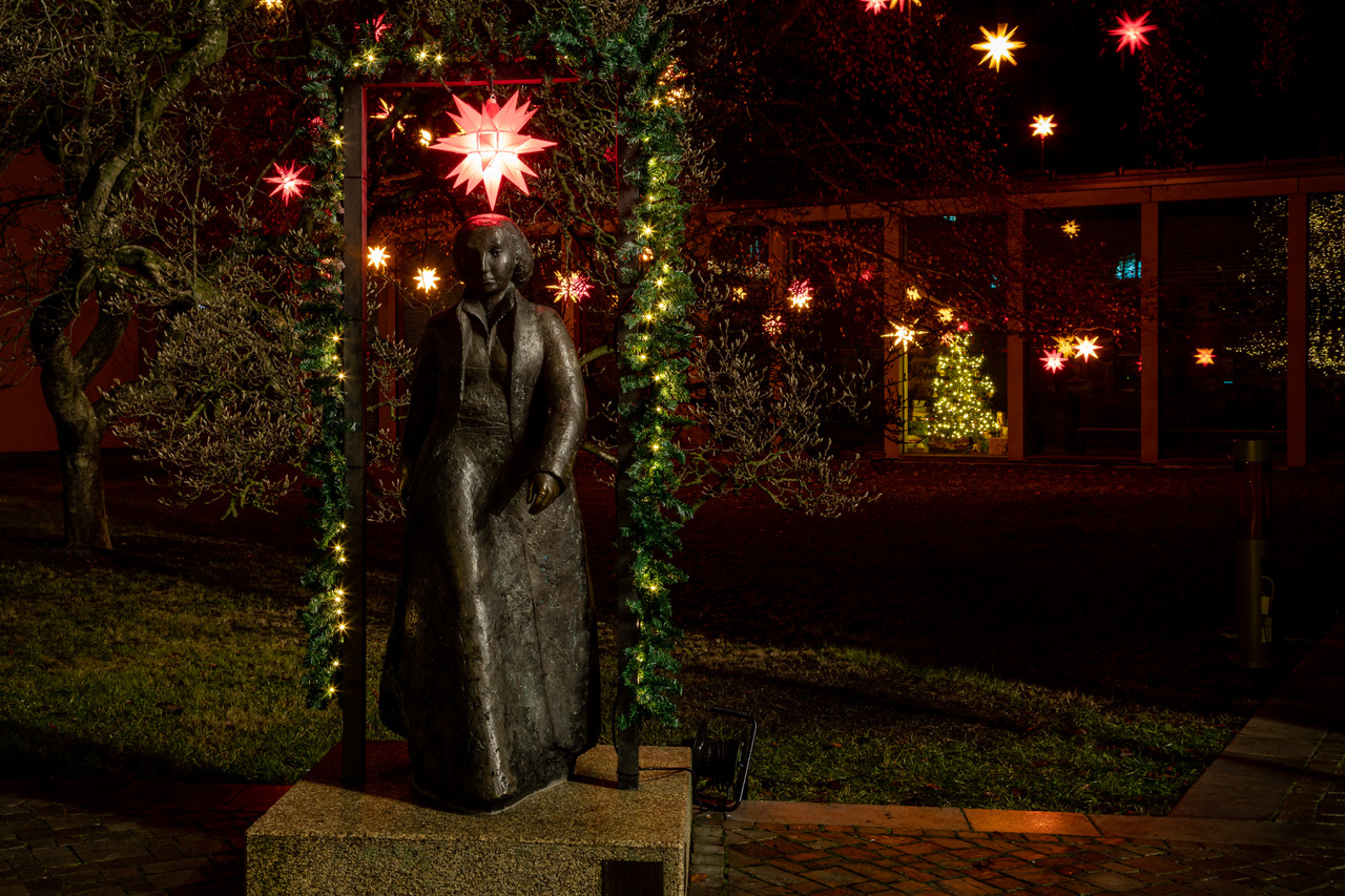 Bild: Stimmungsvoll geschmückt präsentiert sich der Lutherhof in der Adventszeit. Foto: LutherMuseen