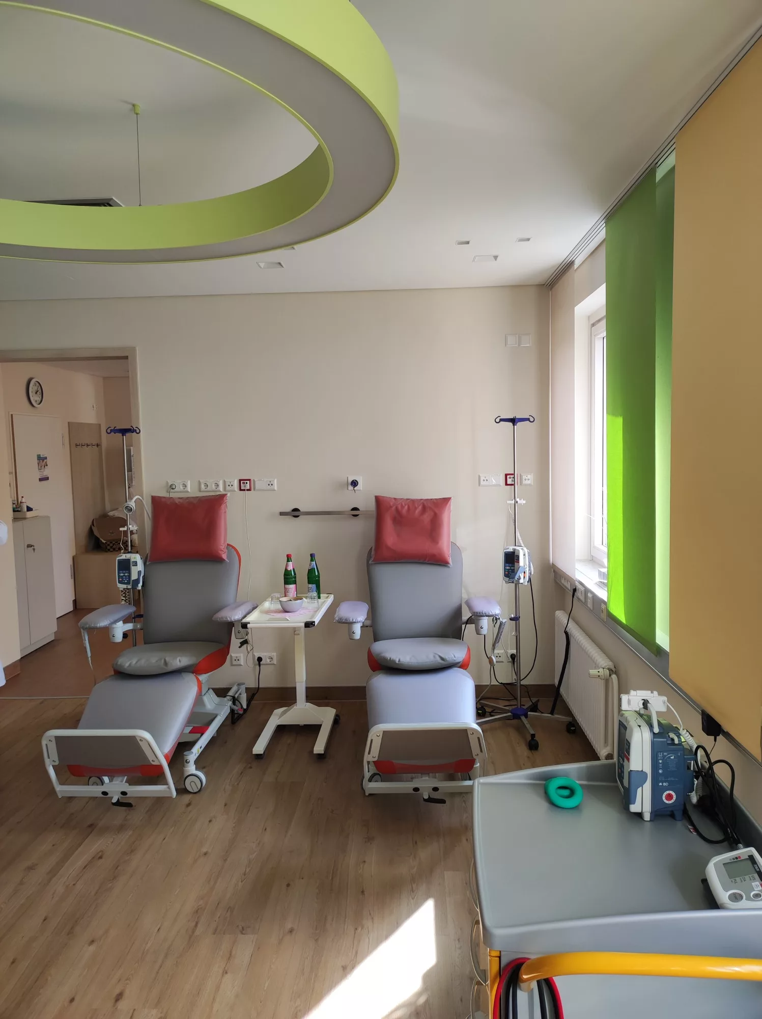 Die Diagnose Krebs stellt für Betroffene oft einen tiefen Einschnitt im Leben dar. Neben einer modernen medizinischen Versorgung ist deshalb auch ein Umfeld wichtig, das Sicherheit und Vertrauen vermittelt. Die neuen Räume der Ambulanten Chemotherapie wurden modern gestaltet und in hellen, freundlichen Farben eingerichtet, um den oft langen Behandlungszeiten eine möglichst angenehme Atmosphäre zu geben.