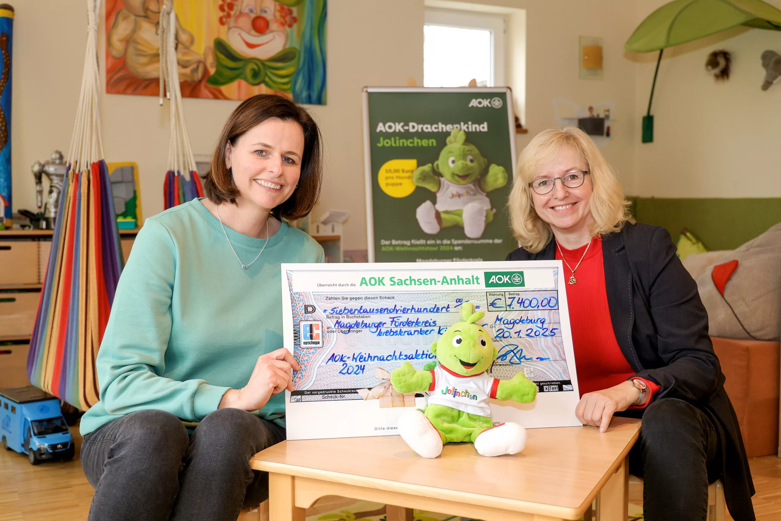 Magdeburg (md). Die AOK Sachsen-Anhalt hat eine Spende in Höhe von 7.400 Euro an den Magdeburger Förderkreis krebskranker Kinder e.V. übergeben. Das Geld wurde auf den Weihnachtsmärkten im Land sowie von Mitarbeiterinnen und Mitarbeitern der AOK gesammelt.