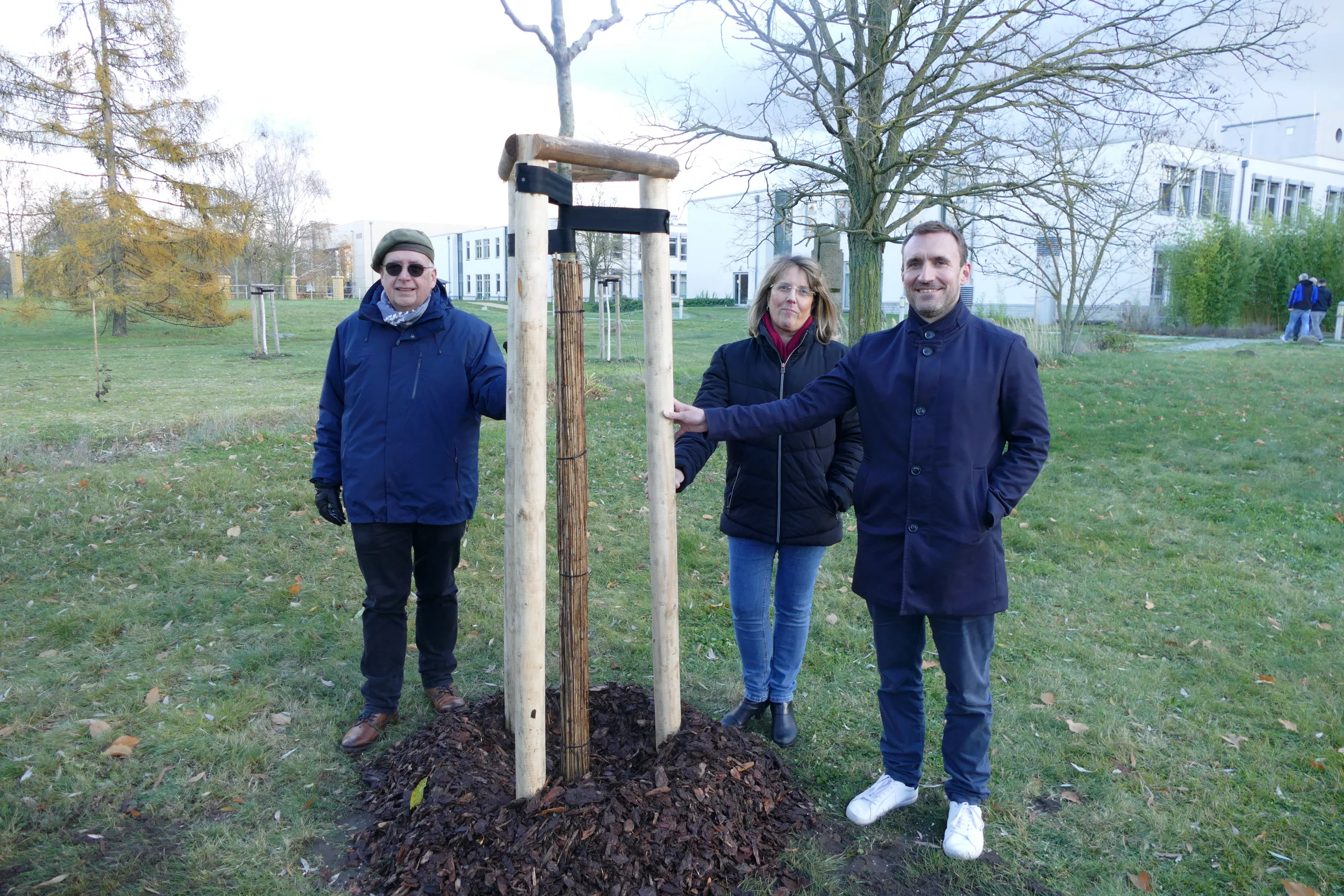 Bild: Dr. Nikolaus Särchen (l.) pflanzte den Baum gemeinsam mit seinem Nachfolger Dr. Dr. Christian Stoppel und Petra Stein, Regionalgeschäftsführerin der Alexianer Sachsen-Anhalt. Foto: Zilke