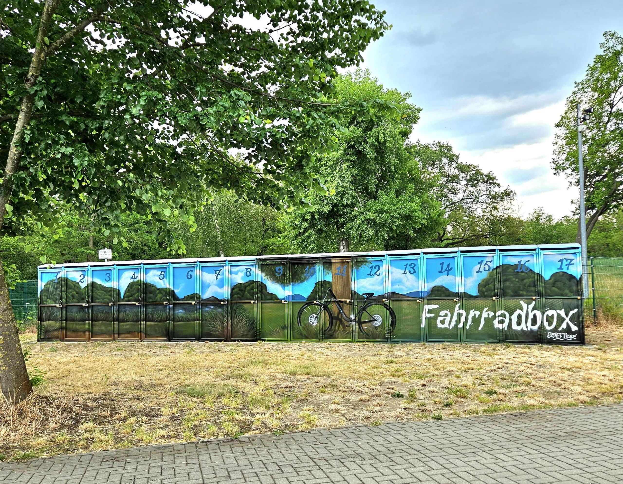 Neu ist auch eine große Fahrradabstellbox, die gleich vor dem Eingang des Freibades ins Auge