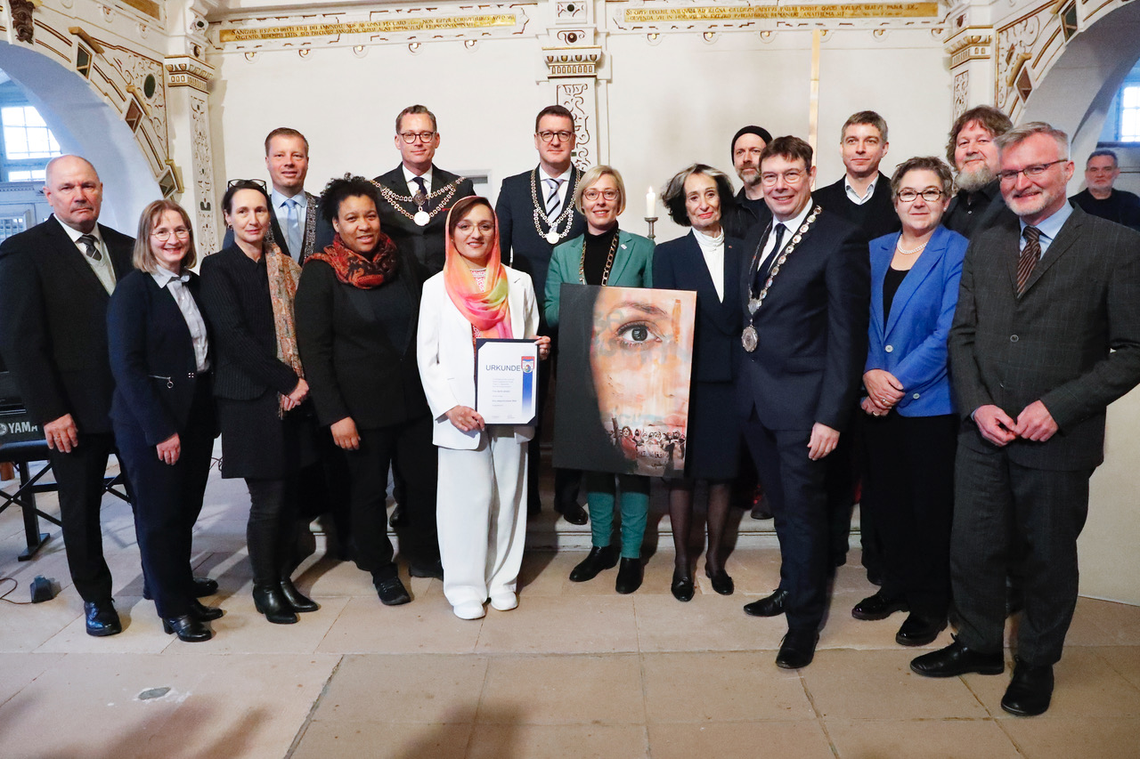 Sie hat Afghanistan mit ihrer Familie verlassen können und kämpft nun von Deutschland aus weiter. „Ich widme diesen Preis allen afghanischen Frauen, die um ihre Rechte kämpfen“, sagte sie in der Schlosskirche. „Die Frauen und Mädchen, die diese Unterdrückung aushalten, sind die wirklichen Helden.“ Bürgermeister Thomas Kaminski als Ausrichter der diesjährigen Preisverleihung hat großen Respekt vor dieser jungen mutigen Frau und schlägt den Bogen in unsere Gesellschaft, in der die Gleichstellung von Mann und Frau zwar geregelt, aber noch nicht selbstverständlich ist und ständig daran gearbeitet werden muss.