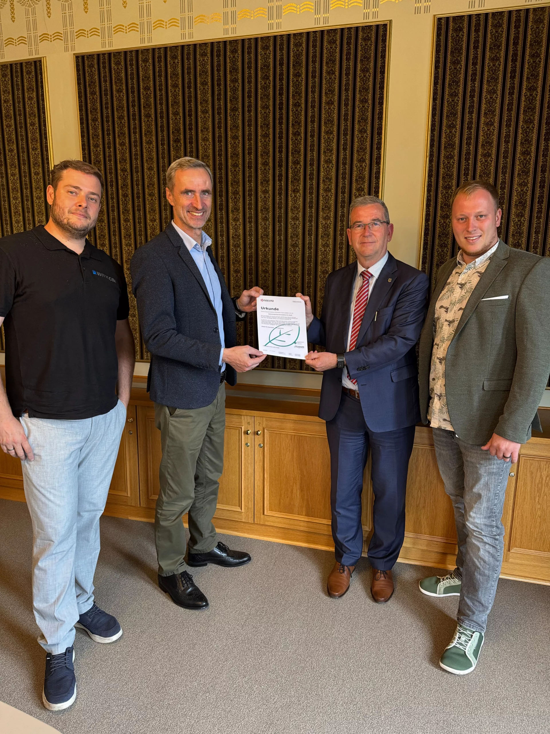 Foto (v.l.): Denny Gilgenast, Geschäftsführer WITTCOM Bürosysteme & CopyCenter Wittenberg GmbH; Daniel Preissing, Gebietsverkaufsleiter KYOCERA Document Solutions Deutschland GmbH; Deddo Lehmann, Geschäftsführer und Kurdirektor Eisenmoorbad Bad Schmiedeberg-Kur-GmbH; Gideon Bär, Leiter Elektronische Datenverarbeitung Eisenmoorbad Bad Schmiedeberg-Kur-GmbH