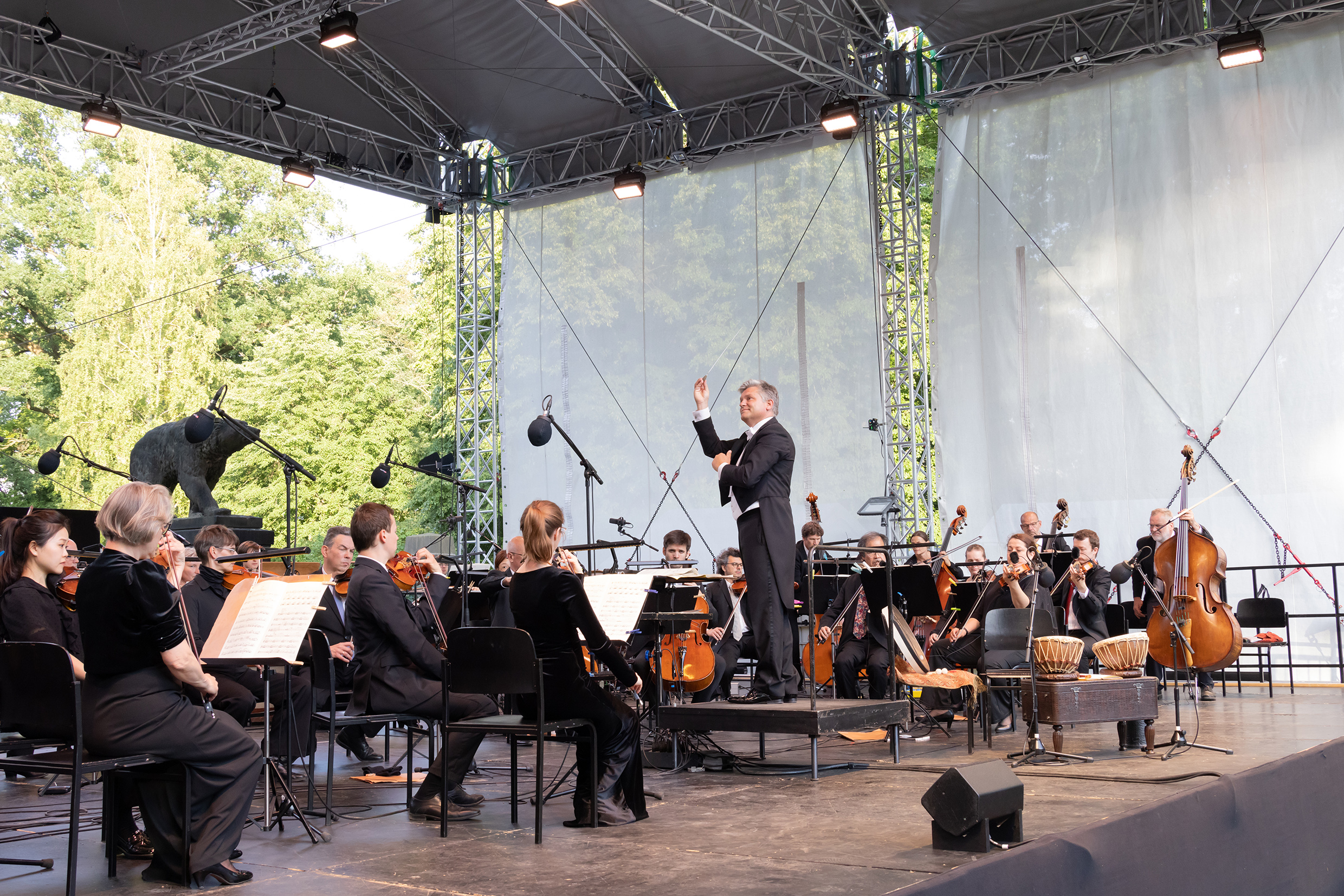 Bild: GMD Markus L. Frank dirigiert die Anhaltische Philharmonie. Foto: Claudia Heysel