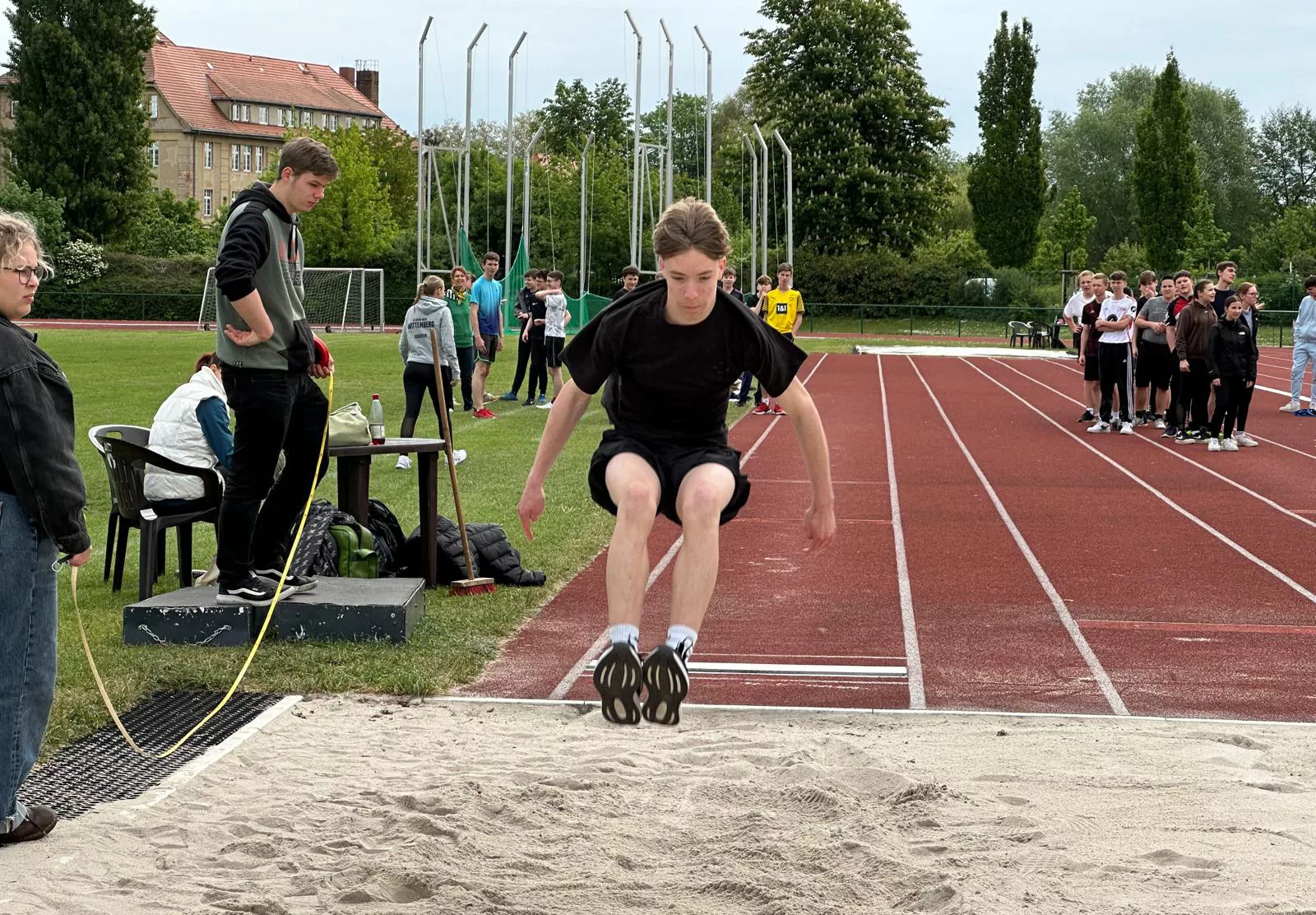 Jens Kühnast, der gemeinsam mit Birgit Freihube seit einem Jahr die Schulleitung führt, beteiligte sich als Kampfrichter beim Kugelstoßen und betonte den Geist des fairen Wettbewerbs: „Jeder gibt sein Bestes, ganz im Sinne des olympischen Gedankens.“