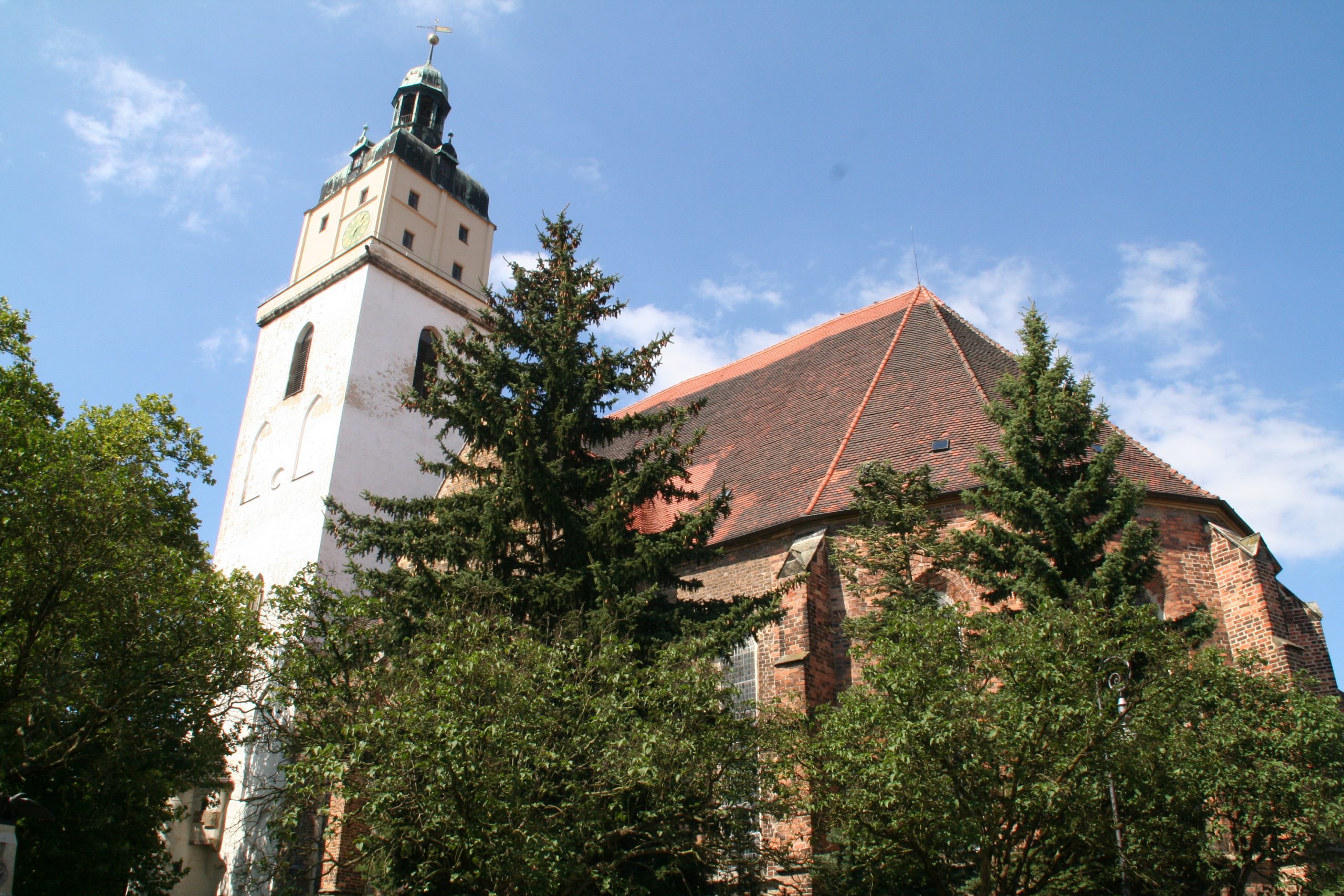Bild: Der Fahrradgottesdienst beginnt in der Evangelischen Stadtkirche in Bad Schmiedeberg. Foto: Wolfgang Gorsboth