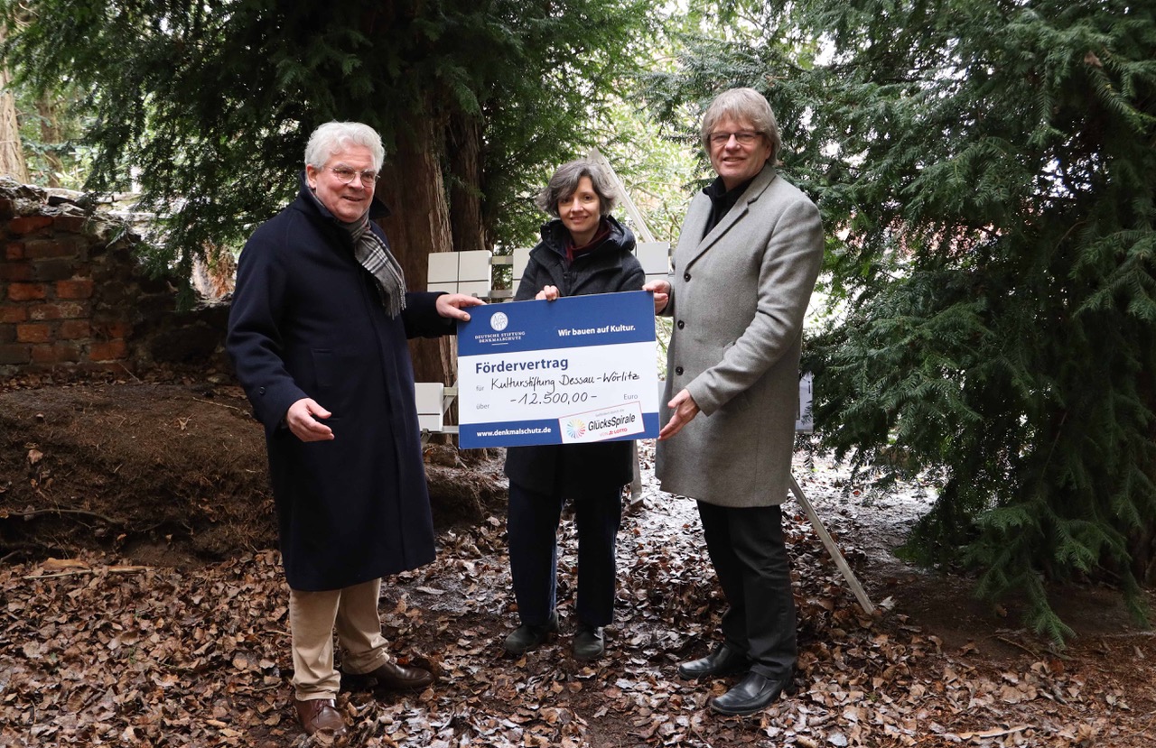 Prof. Dr. Christian Antz, Ortskurator Magdeburg der DSD, hat am Donnerstag, dem 26. Januar 2023, den entsprechenden Fördervertrag an Robert Hartmann, Leiter der Abteilung Baudenkmalpflege der Kulturstiftung Dessau-Wörlitz, übergeben. Die Untersuchung der Skulpturen gehört zu den über 590 Projekten, welche die private Denkmalschutzstiftung dank Spenden und Mitteln der Glücksspirale und der Rentenlotterie von Lotto inzwischen in Sachsen-Anhalt fördern konnte.