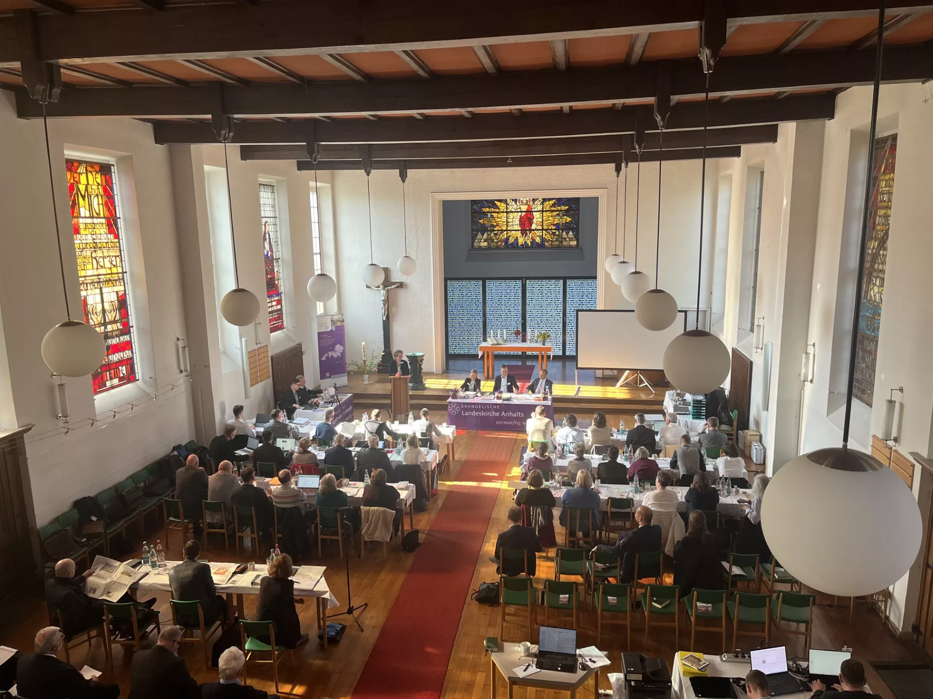 Dessau (md/wg). In der Dessauer Auferstehungskirche hat heute die Frühjahrssynode der Evangelischen Landeskirche Anhalts begonnen. Die Beratungen werden bis Samstagnachmittag dauern. In seiner Eröffnungsrede erklärte der kommissarische Präses, Dr. Jan Brademann, es sei wichtig, aus den Erfahrungen der Geschichte zu lernen und Verantwortung für die Zukunft zu übernehmen. Brademann sagte: „Vergangenheit, Zukunft, Ewigkeit – in der Gegenwart dieser Synode fließen diese Dimensionen in allen Themen zusammen, denen wir uns widmen.“ Die Synode werde zurückschauen auf sexualisierte Gewalt in der Kirche, die verschwiegen worden ist und künftig EKD-weit besser verhindert werden soll.