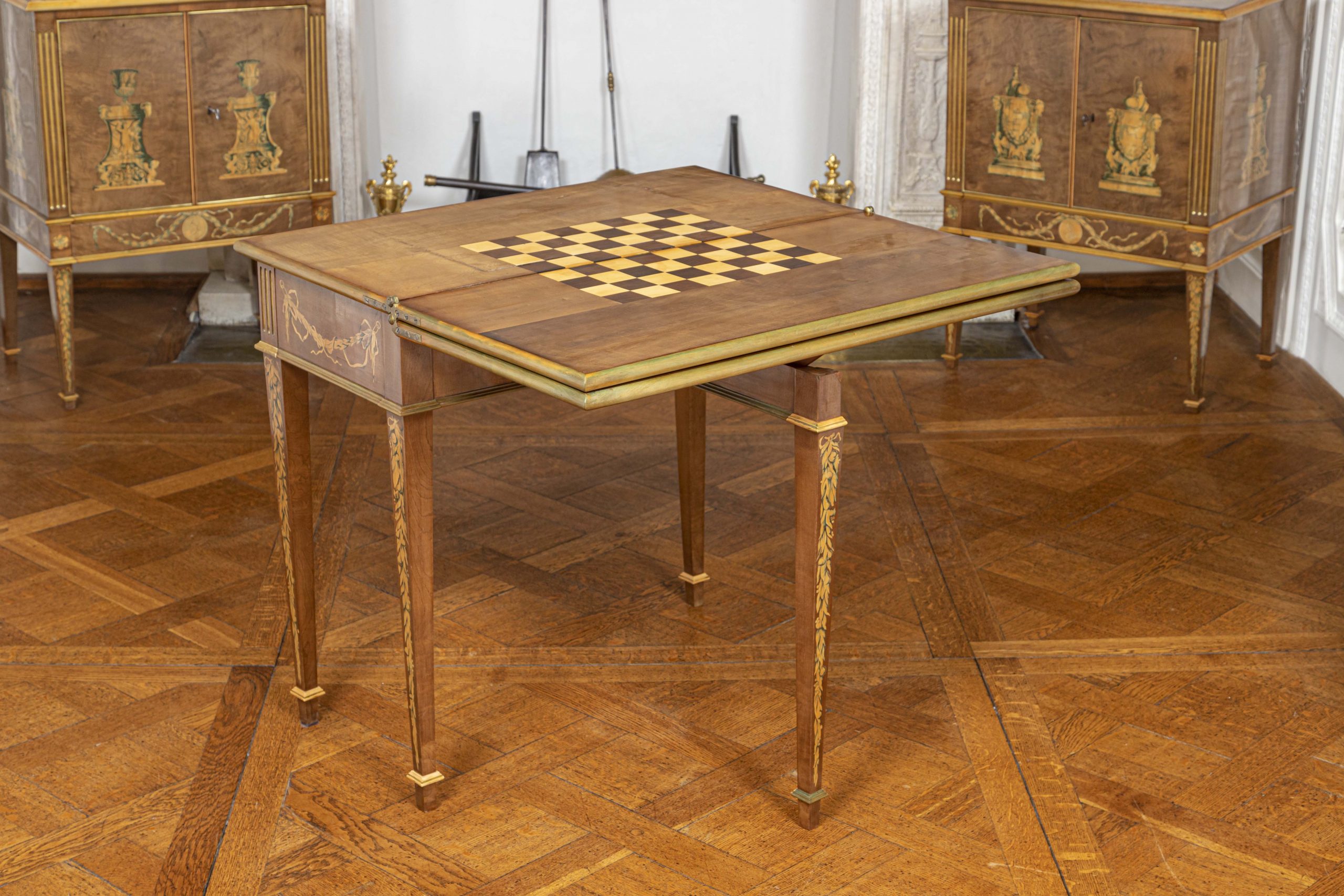 Neben vielen Kostbarkeiten befinden sich im Wörlitzer Schloss klassizistische Möbel von Weltrang: Stühle, ein Arbeitstisch, zwei Schränkchen und zwei besondere Spieltische aus der Werkstatt David Roentgens. Diese multifunktionalen „Verwandlungstische“ können nach Bedarf zum Schachspiel, Kartenspiel oder als Schreibtische ausgeklappt werden. Außerdem lassen sich die mit feinen Marketerien versehenen Holzmöbel für Transporte in Einzelteile zerlegen.