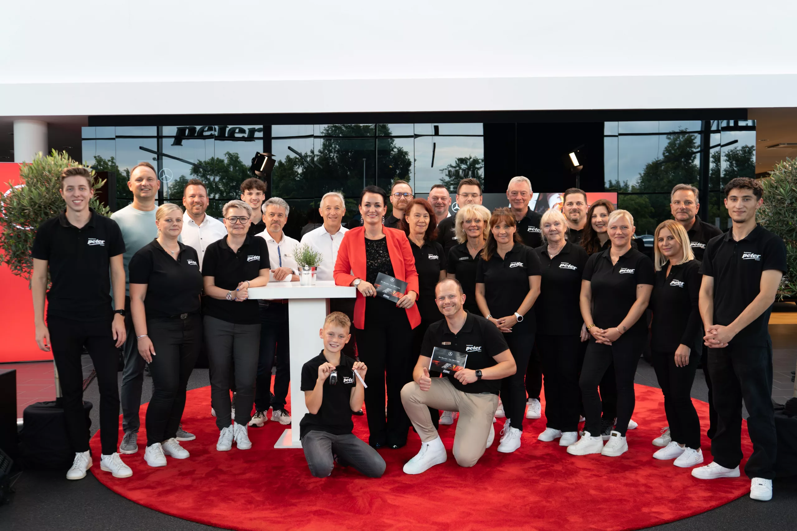 Ein emotionaler Auftakt sorgte für Gänsehaut: Zur Musik von „It’s a Man’s World“ wurde die neue vollelektrische G-Klasse enthüllt – ein Symbol für die Zukunft der Offroad-Performance im Zeichen der Elektromobilität. „Damit verbinden wir die Tradition echter Stärke mit der Innovationskraft von morgen“, betonte Christina Dost in ihrer Begrüßungsansprache, bevor Helmut und Andreas Peter die Gäste ebenfalls willkommen hießen.