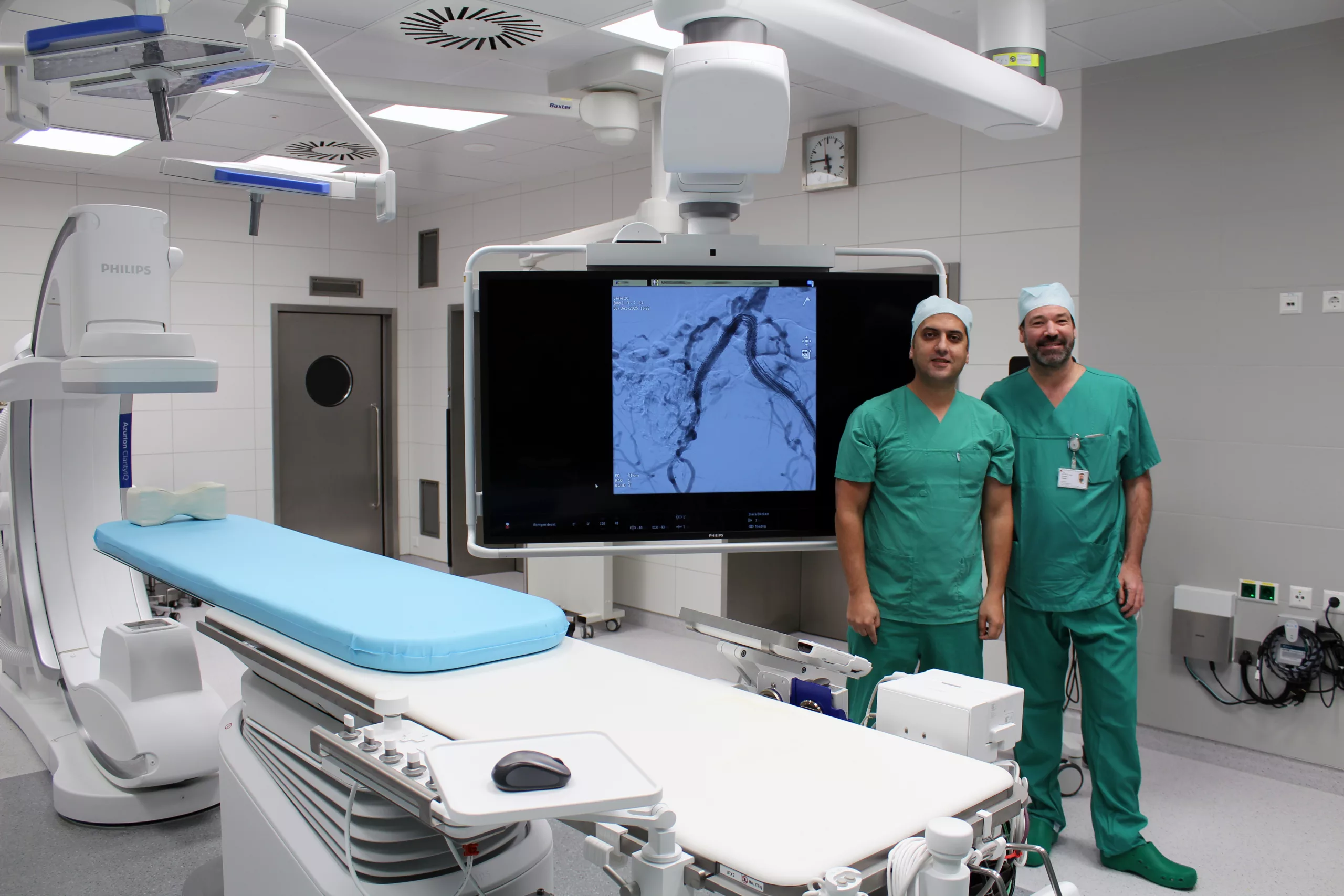 „Die neue Anlage bietet uns Gefäßchirurgen eine hervorragende Leistungsfähigkeit bei komplexen Eingriffen am Aortenbogen, dem obersten Abschnitt der Hauptschlagader. Wir können dabei Verletzungen und Erkrankungen der Aorta sowohl im Brustraum als auch im Bauchraum bis hin zu den Nierenarterien behandeln. Ebenso sind anspruchsvolle Rekonstruktionen der viszeralen und Beckenarterien sowie der Beinarterien möglich. Auch tiefere Venenrekanalisationen, also Wiedereröffnungen von verschlossenen Blutgefäßen, zählen dazu. Ich freue mich sehr, dass wir hier in Wittenberg die maximalen Möglichkeiten der Gefäßchirurgie anbieten können“, so Chefarzt El Sherbiny.