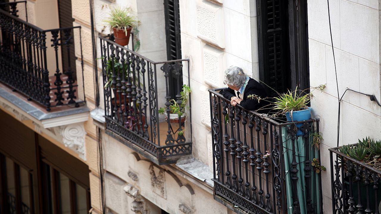 Bild: Seniorin schaut von einem Balkon / Foto: über dts Nachrichtenagentur