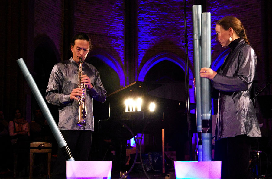 Bild: Das Berliner Duo „Liquid Soul“ spielt zur 15. Orgelnacht Musik mit Wasser und Luft. Foto: Veranstalter