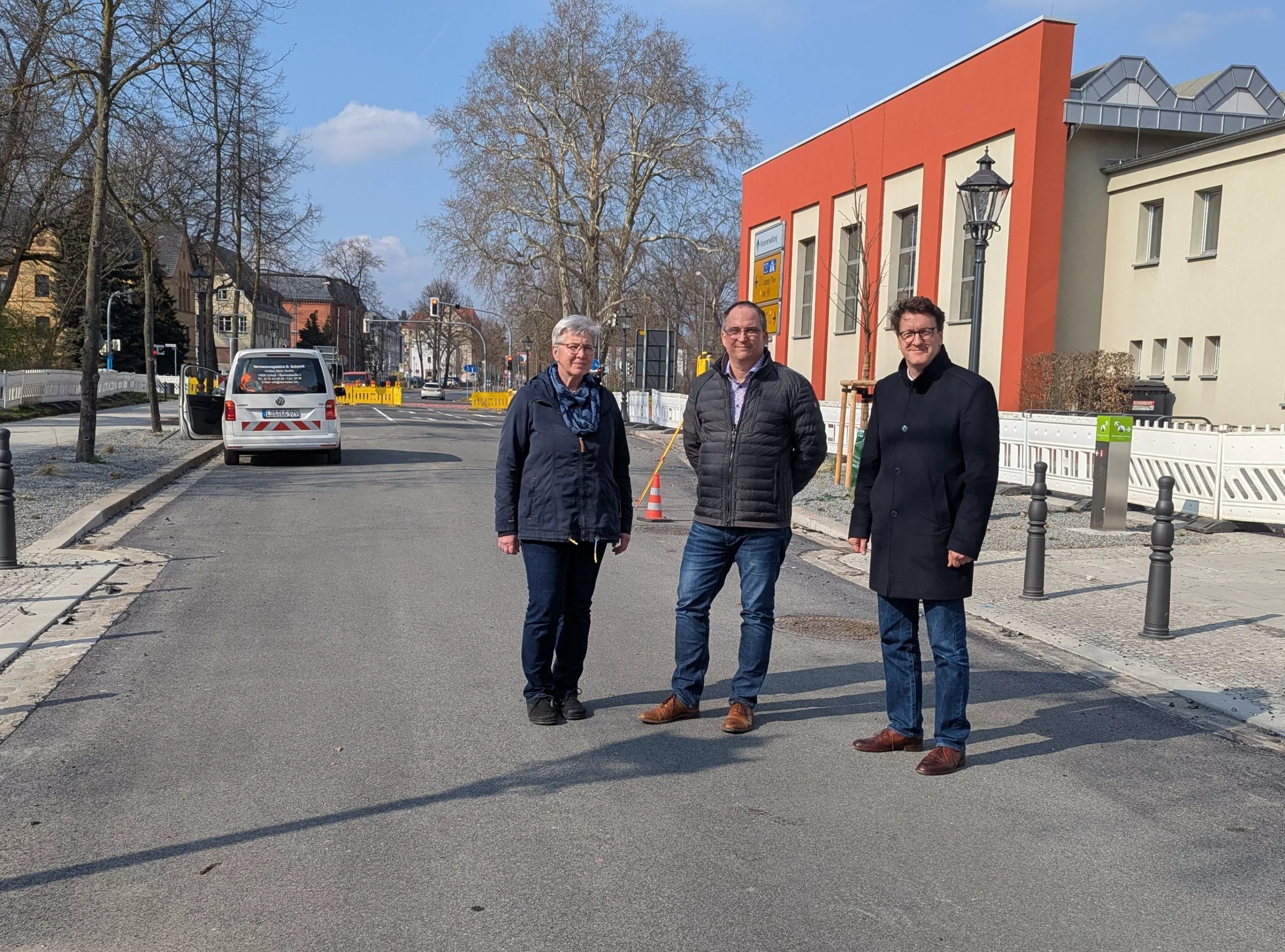 Bild: Oberbürgermeister Torsten Zugehör (r.), Bauleiterin Eike Geisler und Thomas Grabe, Technischer Leiter der Stadtwerke. Foto: Wolfgang Gorsboth