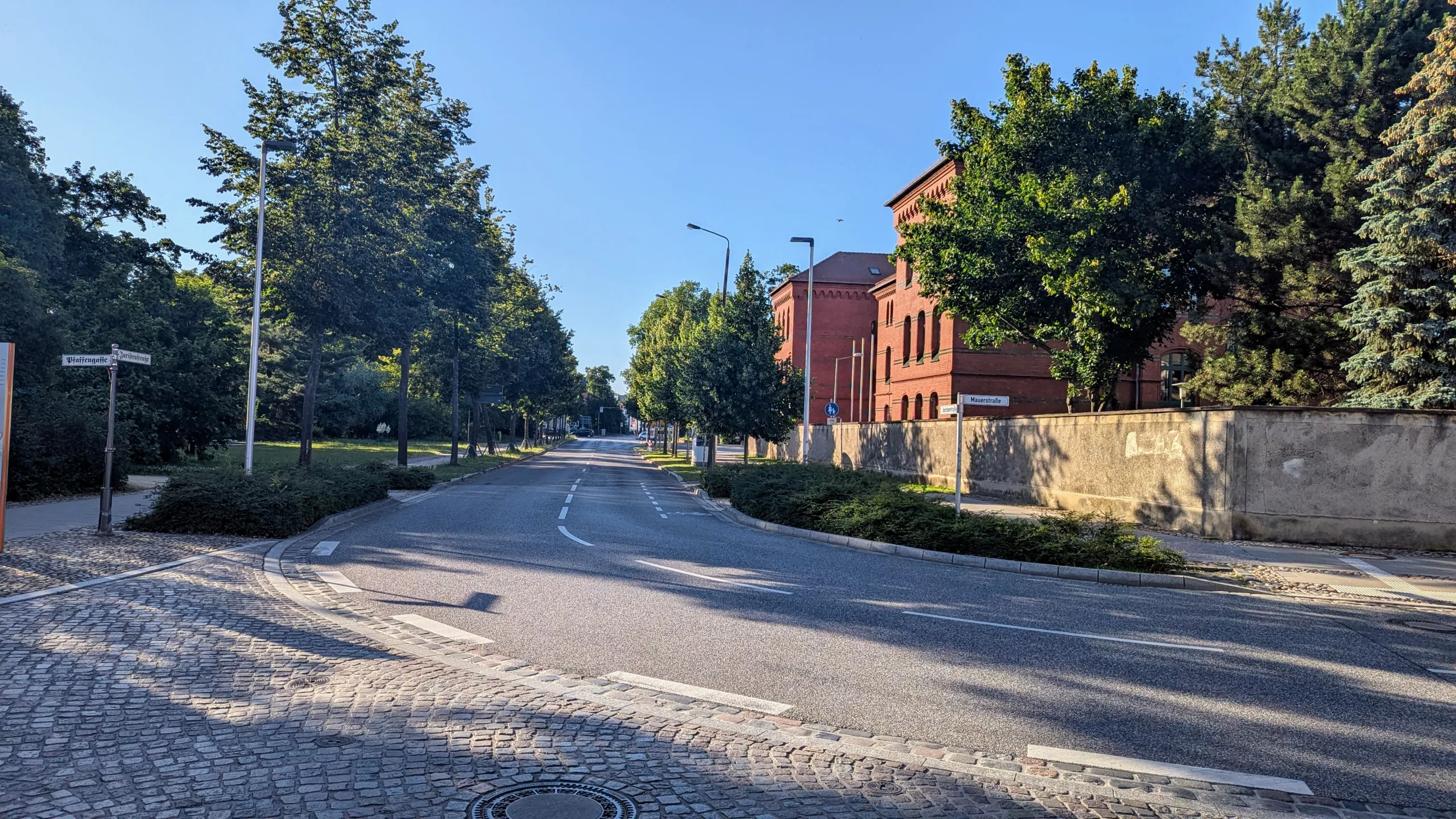 Der Kreuzungsbereich Mauerstraße/Pfaffengasse/Juristenstraße im Bereich Stadthaus bleibt von den Sanierungsarbeiten und demzufolge auch von der Vollsperrung unberührt. Die Juristenstraße-Nord wird so ausgebaut, dass sie künftig sowohl vom motorisierten Kraft als auch Fahrradverkehr genutzt werden kann. Aus diesem Grund ist eine Verbesserung der Fahrradführung aus der Berliner Straße kommend angestrebt.