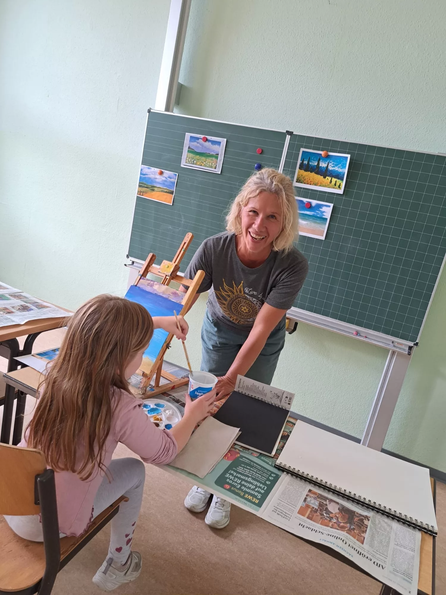 Neun Kinder nahmen bereits am zweiten Kurs teil – diesmal unter dem Motto „Urlaub“. Herausgekommen sind farbenfrohe Bilder, die Fantasie und Lebensfreude der Kinder widerspiegeln. „Wir sind begeistert, wie viel Ausdruckskraft in den Arbeiten steckt“, sagt Manuela Neubert vom Hort Wunderland. „Es ist schön zu sehen, dass die Kinder nicht nur ihre Talente entdecken, sondern auch Selbstvertrauen gewinnen.“