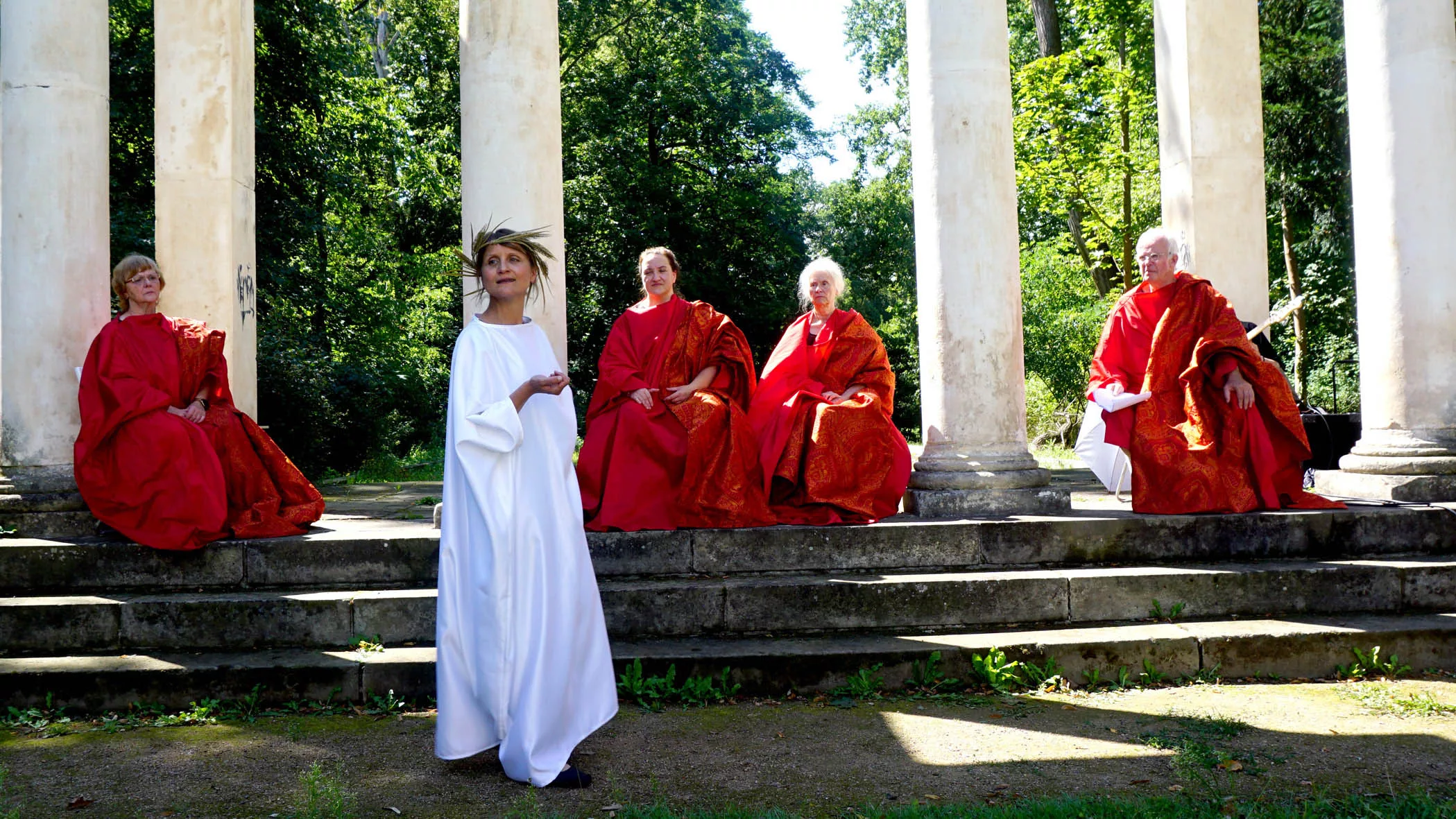 Coswig (md). Nach der Aufführung auf dem Klosterhof zum Tag des offenen Denkmals ist mit „Die Acharner“ von Aristophanes die älteste überlieferte Komödie am Sonntag, dem 8. Oktober 2023, um 16 Uhr erneut im Simonetti Haus in Coswig (Anhalt) zu erleben, diesmal auch im Rahmen der Flämingkulturpartie. Nach der Aufführung ist ein Zuschauergespräch zum Thema: „Die Acharner, der Frieden und wir“ geplant.