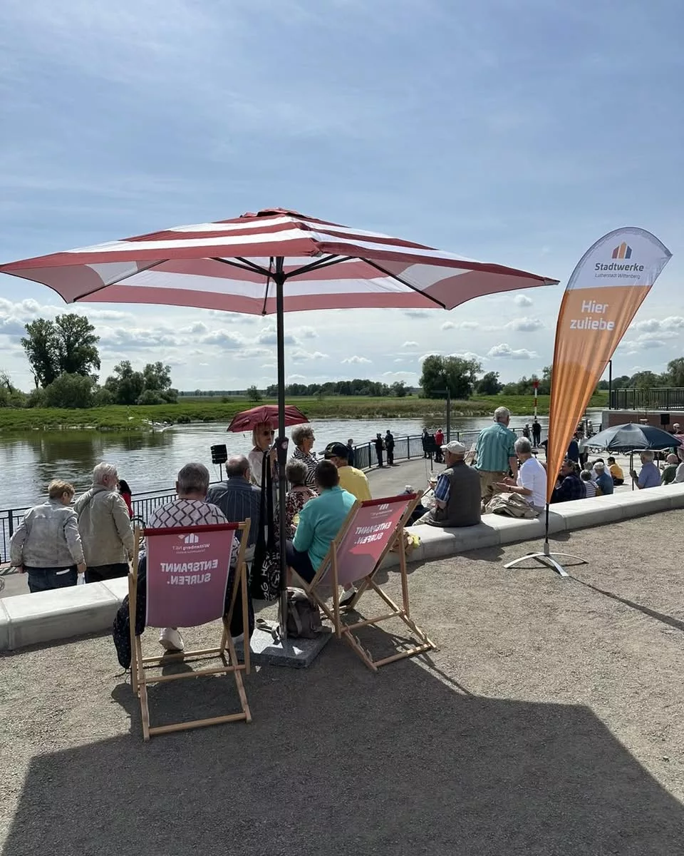 Die Umgestaltung der Hafenpromenade wird über das Bundesprogramm „Anpassung urbaner Räume an den Klimawandel“ mitfinanziert – einem wichtigen Instrument der Grün- und Freiraumentwicklung mit hoher Wirksamkeit für den Klimaschutz und Klimaanpassung. Die Teilnahme der Lutherstadt Wittenberg mit einem Infostand ist Teil der Öffentlichkeitsarbeit im Rahmen des bundesweiten Tages der Städtebauförderung. Foto: Stadtwerke Wittenberg