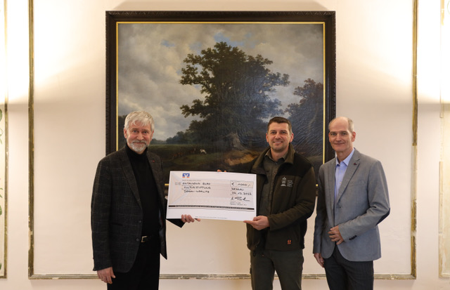 Bild: Dr. Dirk Helmut Barth, Präsident des Lions-Clubs Dessau-Anhalt, Marco Berndt, Referat Forst der Kulturstiftung Dessau-Wörlitz und Dirk Haja (v.l.n.r.), Verwaltungsleiter der Kulturstiftung. Foto: © Kulturstiftung Dessau-Wölitz/Janin Müller