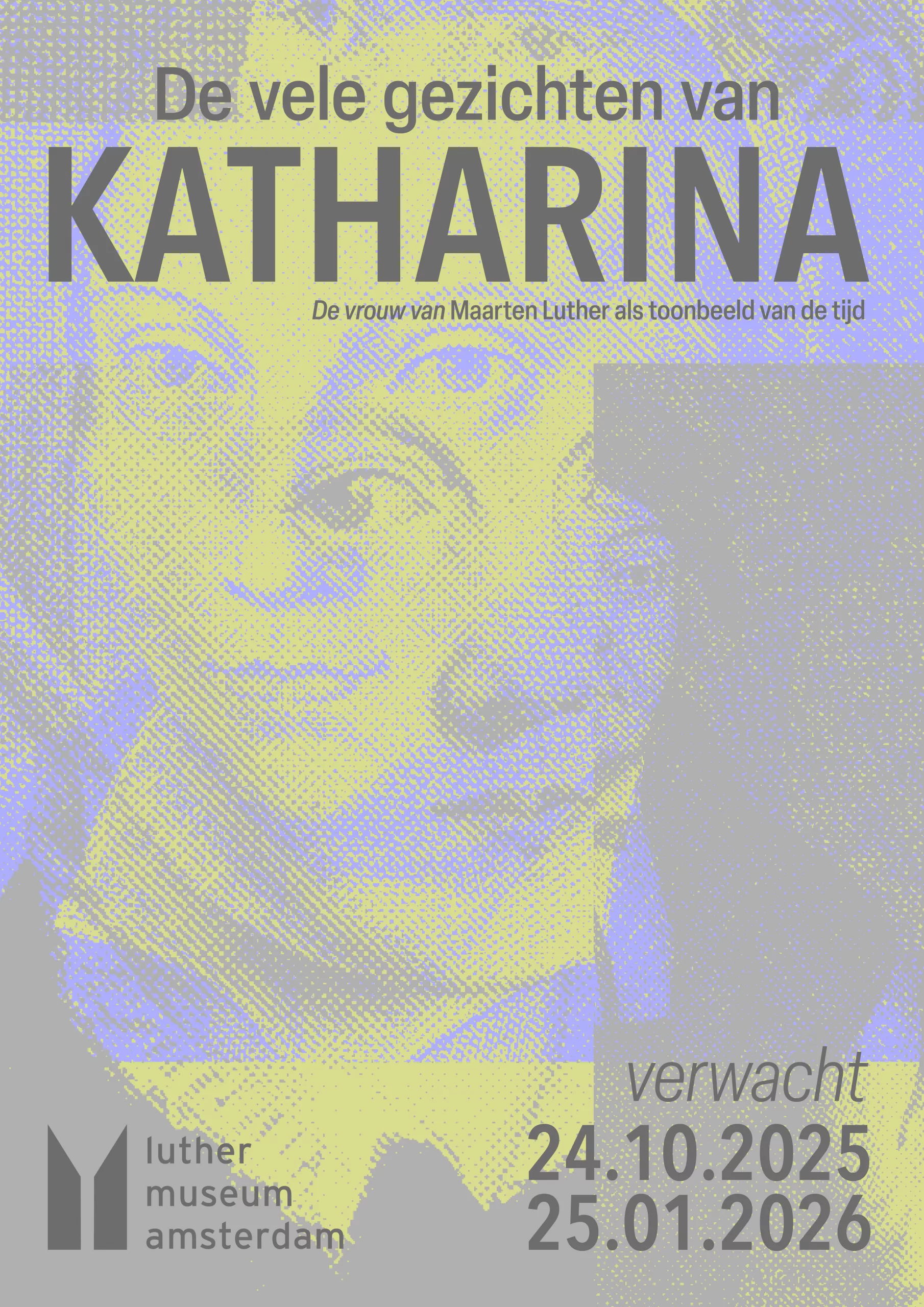 Im Laufe der Jahre sammelten die lutherische Kirche und die Diakonie ein bedeutendes Kulturerbe, das in die Ausstellung eingeflossen ist. Das Gebäude selbst – einschließlich der Regentenzimmer, des Flurs und des Kirchsaals – ist das bedeutendste Ausstellungsstück. Die Sammlung umfasst zudem Gemälde, Silberwaren und authentische Möbelstücke. Bild: Das Ausstellungsplakat Katharina, Foto: ©Luther Museum Amsterdam