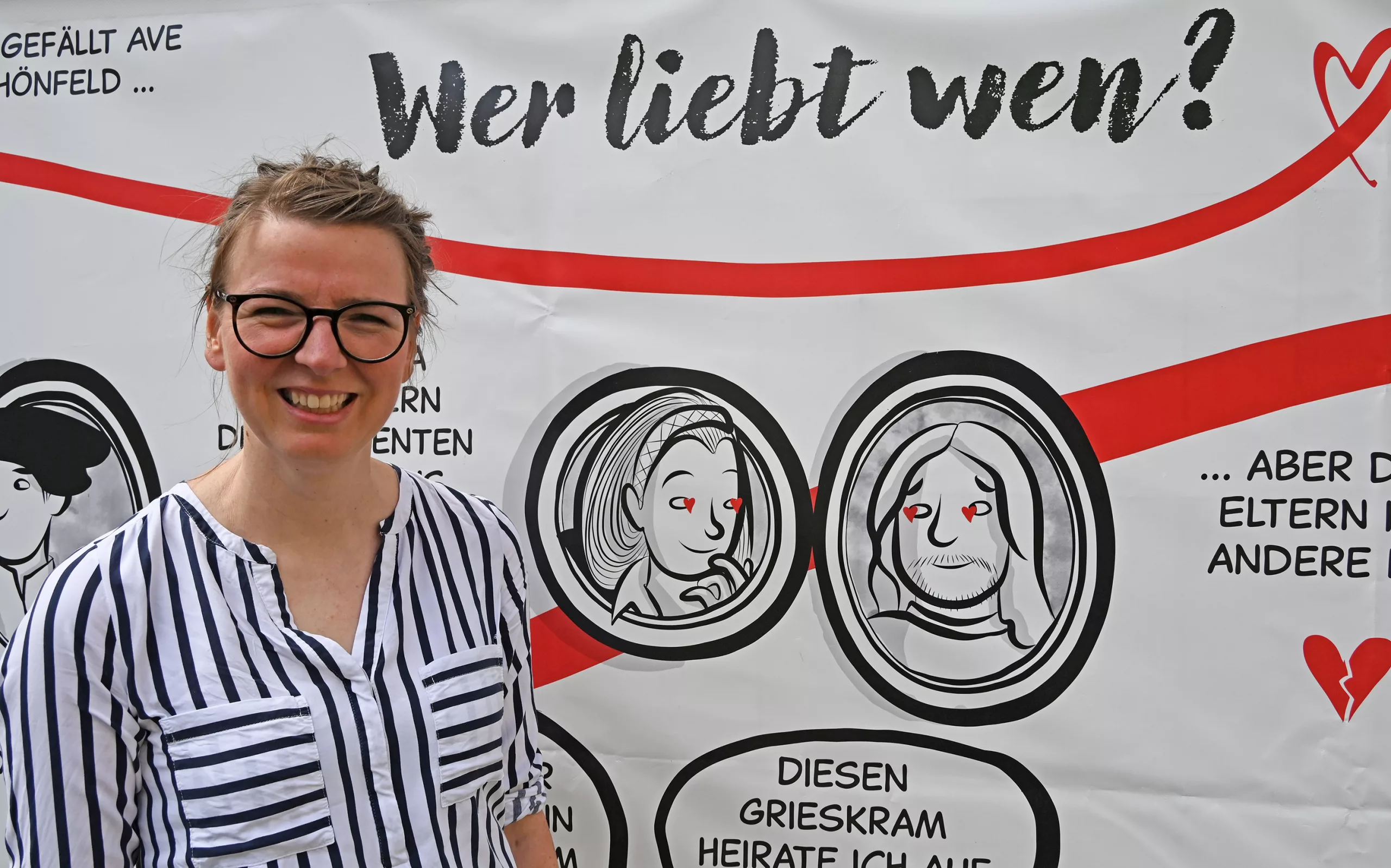 Wittenberg (md/wg). 500 Jahre nach dem „öffentlichen Kirchgang“, bei dem eine breite Öffentlichkeit am 27. Juni 1525 Anteil an der Heirat Martin Luthers mit Katharina von Bora nahm, zeigen die LutherMuseen ein eigens für „Luthers Hochzeit“ hergestelltes Comic. Die unterhaltsame und anrührende Bildgeschichte der halleschen Illustratorin Lucie Göpfert (siehe Foto) erzählt, wie Martin und Katharina sich kennen und lieben lernten und schlussendlich heirateten. Die Erzählung ist frei und kostenlos zugänglich auf sechs Schauwänden im Lutherhof zu sehen.