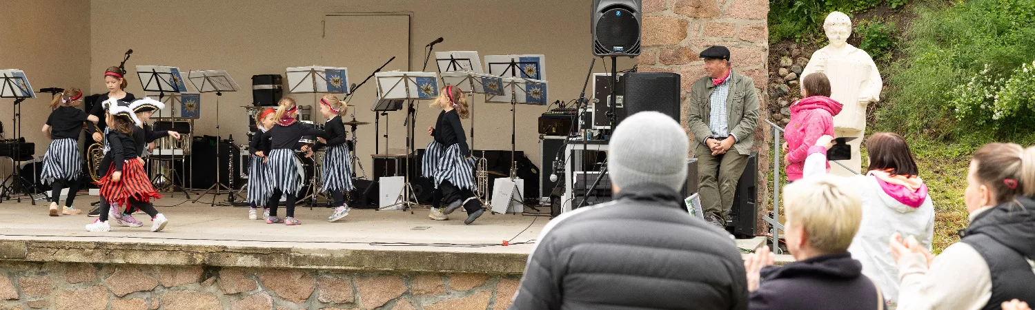 Auch abseits der Bühne gibt es viel zu entdecken. Kinder und Familien können an zahlreichen Stationen selbst aktiv werden und ausprobieren, was Handwerk, Kreativität und Naturerleben in der Dübener Heide ganz praktisch bedeuten. Ob Nistkästen bauen, Honig schleudern, Keramik gestalten, Töpfe bepflanzen oder Herzen aus Schiefer ausschlagen – vieles davon knüpft an das an, was in der Region zuhause ist und mit den eigenen Händen erfahrbar wird. Bewegungsangebote wie Zorbing und Hüpfburg ergänzen das Programm.
