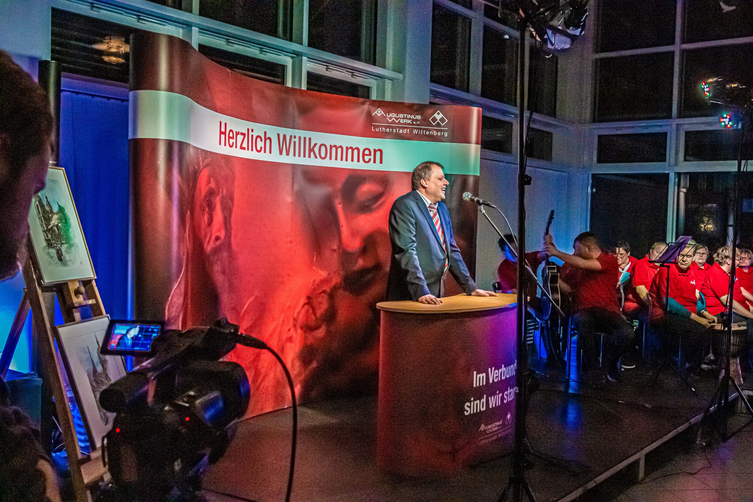Zugehör erinnerte an die lateinische Inschrift des Lübecker Holstentores „Concordia domi foris pax“ („Eintracht innen, draußen Friede“), die heute aktueller denn je sei. Der Blick auf das Gemeinsame und Verbindende dürfe nicht verloren gehen, die Angst vor der Zukunft und die Sorge vor der Ungewissheit dürften nicht zu Rückzug und Abschottung führen. Im Zeitalter der Globalisierung seien Innen und Außen eng miteinander verwoben und dürften nicht gegeneinander ausgespielt werden, vielmehr gehe es darum, beides auf verantwortliche Weise miteinander zu versöhnen. Trotz aller Probleme hätten Augustinusvorstand Monecke und sein Team den kreativen Geist nicht verloren, sondern in schwierigen Zeiten mit „Mittendrin Wittenberg“ ein neues Printmagazin auf den Weg gebracht.