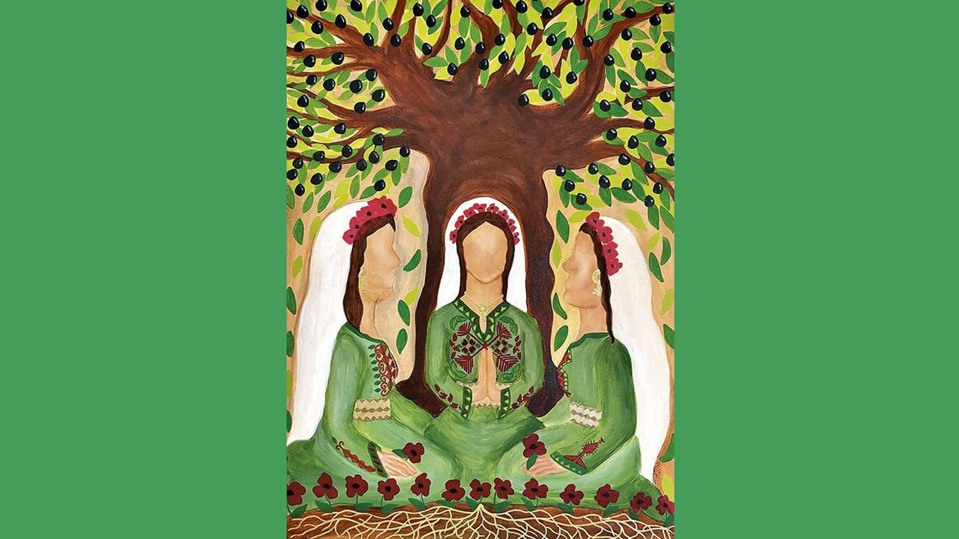 Bild: Das Bild zum diesjährigen Weltgebetstag: „Betende palästinensische Frauen“ von Halima Aziz. Foto: Veranstalter