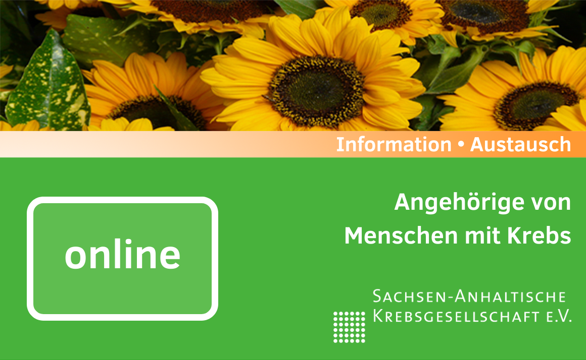 Wittenberg (md). Mit dem Thema „Die Krankheit verändert uns und unser Leben“, findet im Rahmen eines Angebotes für An- bzw. Zugehörige von Menschen mit Krebs der Sachsen-Anhaltischen Krebsgesellschaft (SAKG) am Dienstag, dem 12. September 2023, von 18 bis 19.30 Uhr ein virtuelles Austauschtreffen statt, das diese Personengruppe unterstützen soll. Die Veranstaltung wird online via Zoom-Meeting stattfinden. Anmeldungen sind ab sofort unter der Telefonnummer 0345/478 81 10 bzw. über info@sakg.de möglich. Die Teilnahme ist kostenfrei.