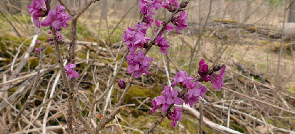 Bild: Der Echte Seidelbast blüht zur Osterzeit, im Volksmund wird er auch Karfreitagsblume genannt.
