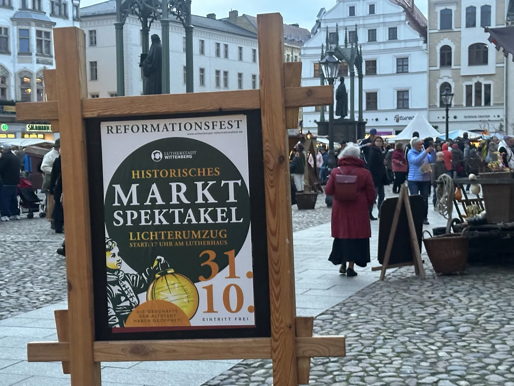 Auf der Schlosswiese begrüßte Stadt-Herold Theo Theodor die Teilnehmer mit humorvollen Sprüchen, bevor an der Schlosskirche eine eindrucksvolle Sandmalerei zum Todestag Friedrichs des Weisen projiziert wurde. Den Abschluss bildete eine wärmende Suppe für alle Beteiligten.