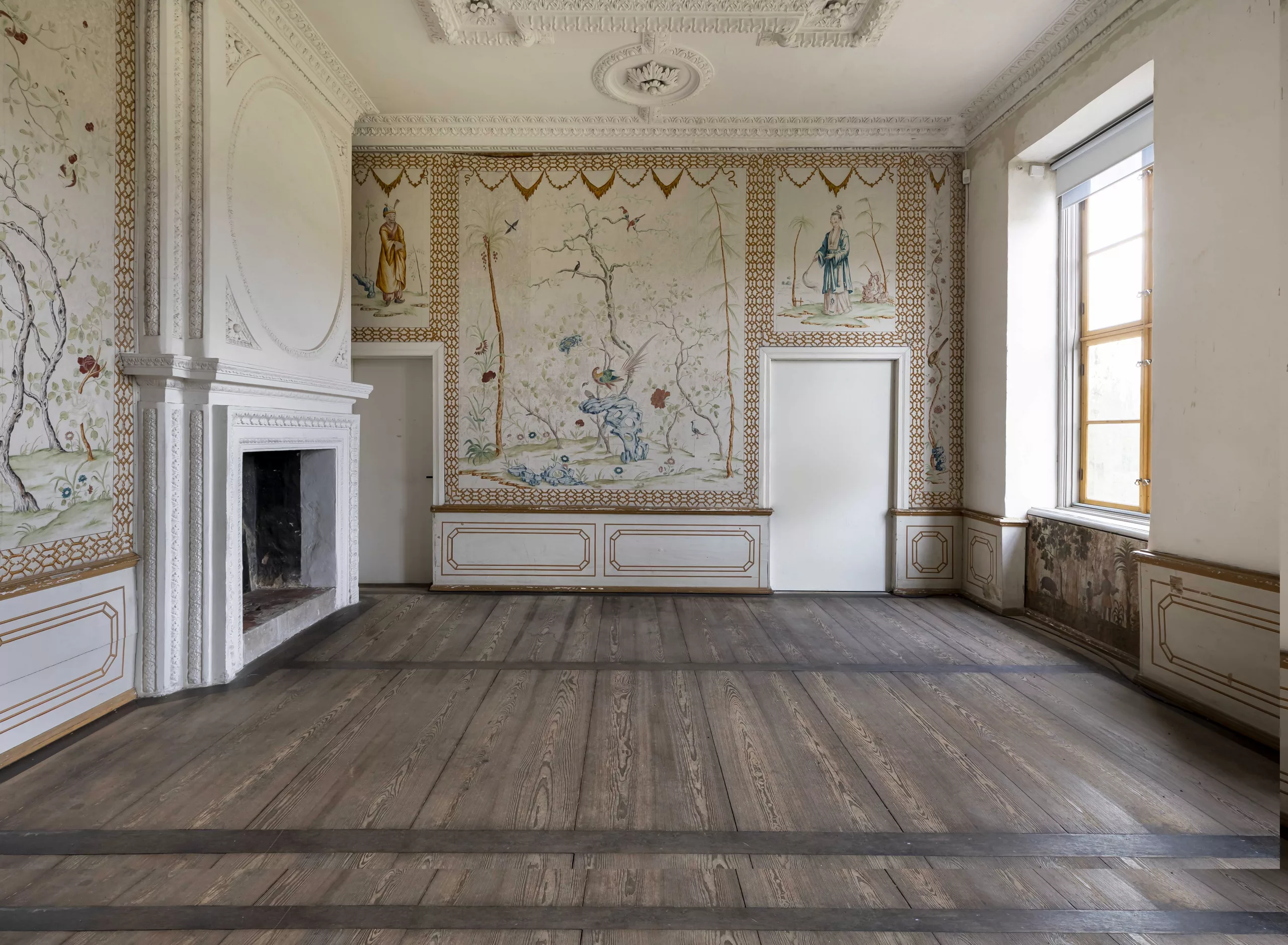 Oranienbaum (md). Im September hat die Restaurierung der bemalten Leinwandbespannungen im südlichen chinesischen Saal im Obergeschoss von Schloss Oranienbaum begonnen. An den etwa 250 Jahre alten Oberflächen werden erstmals Restaurierungsmaßnahmen durchgeführt – eine Besonderheit, denn die beeindruckenden Wandbespannungen sind noch im Originalzustand erhalten. Die Arbeiten werden sich bis zum Jahresende 2024 erstrecken. Ab Saisonbeginn 2025 können Besucherinnen und Besucher die Ergebnisse bewundern.