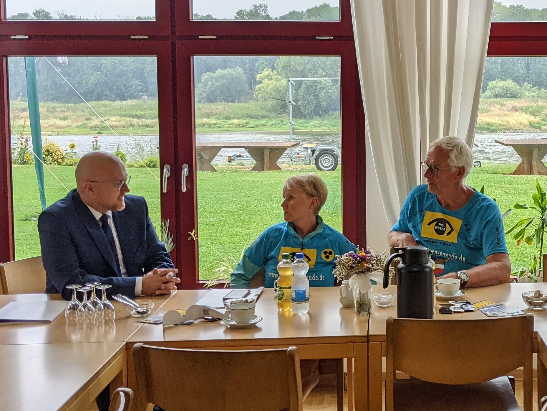Wittenberg (md). Die stark sehbeeinträchtigte Anne Kinski und der mehrmalige Weltmeister und Olympiasieger Ulrich Kons rudern 600 Kilometer auf der Elbe unter dem Motto „Allein ist man stark, gemeinsam unschlagbar“. Start war am 15. August in Dresden, am 1. September wollen die beiden Hamburg erreichen. Am Freitag, dem 18. August, machte das Duo im Ruderclub Wittenberg Station, wo es von Bürgermeister André Seidig begrüßt wurde.