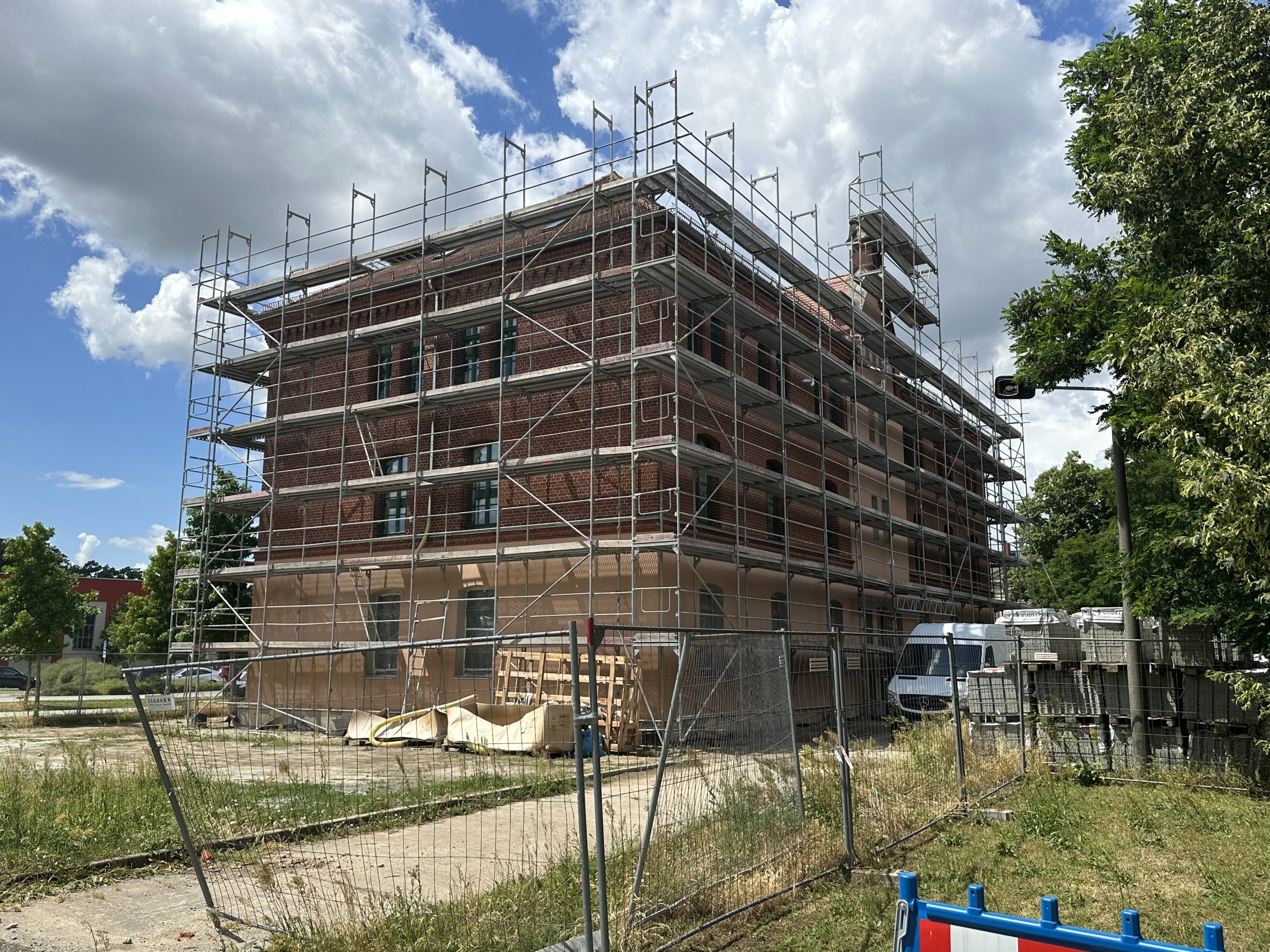 Wittenberg (md). Die Umbau- und Sanierungsarbeiten im ehemaligen K-Gebäude an der Berliner Straße werden voraussichtlich Ende September 2023 abgeschlossen sein. Das Objekt, welches sich auf dem Areal der ehemaligen Kavalierkaserne befindet, wird nach der Fertigstellung sowohl als Bürogebäude für den städtischen Eigenbetrieb Kommunale Bildungseinrichtungen (KommBi) als auch für das Organisationsteam der Landesgartenschau 2027 genutzt.