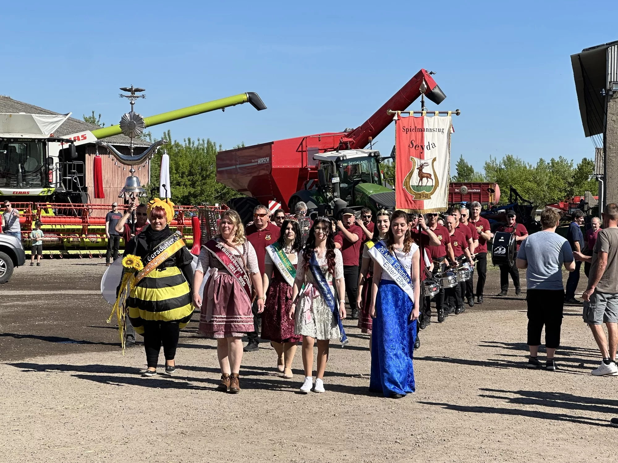 Seyda (aw). Bei strahlendem Maiwetter eröffnet am 1. Mai der Spielmannszug Seyda das Spargelfest. Angeführt von der amtierenden 10. Spargelprinzessin Celine Schwarzer – die 22-Jährige winkte fröhlich ins Publikum, das sich dicht entlang des Weges versammelt hat. Gemeinsam mit fünf weiteren regionalen Hoheiten – der Glücksburger Heidekönigin, der Elbennixe aus Elster, der Rosenprinzessin aus Annaburg, der Gorsdorfer Bienenkönigin und der Jessener Weinprinzessin – eröffnet sie offiziell das Spargelfest der Seydaland Vereinigten Agrarbetriebe.