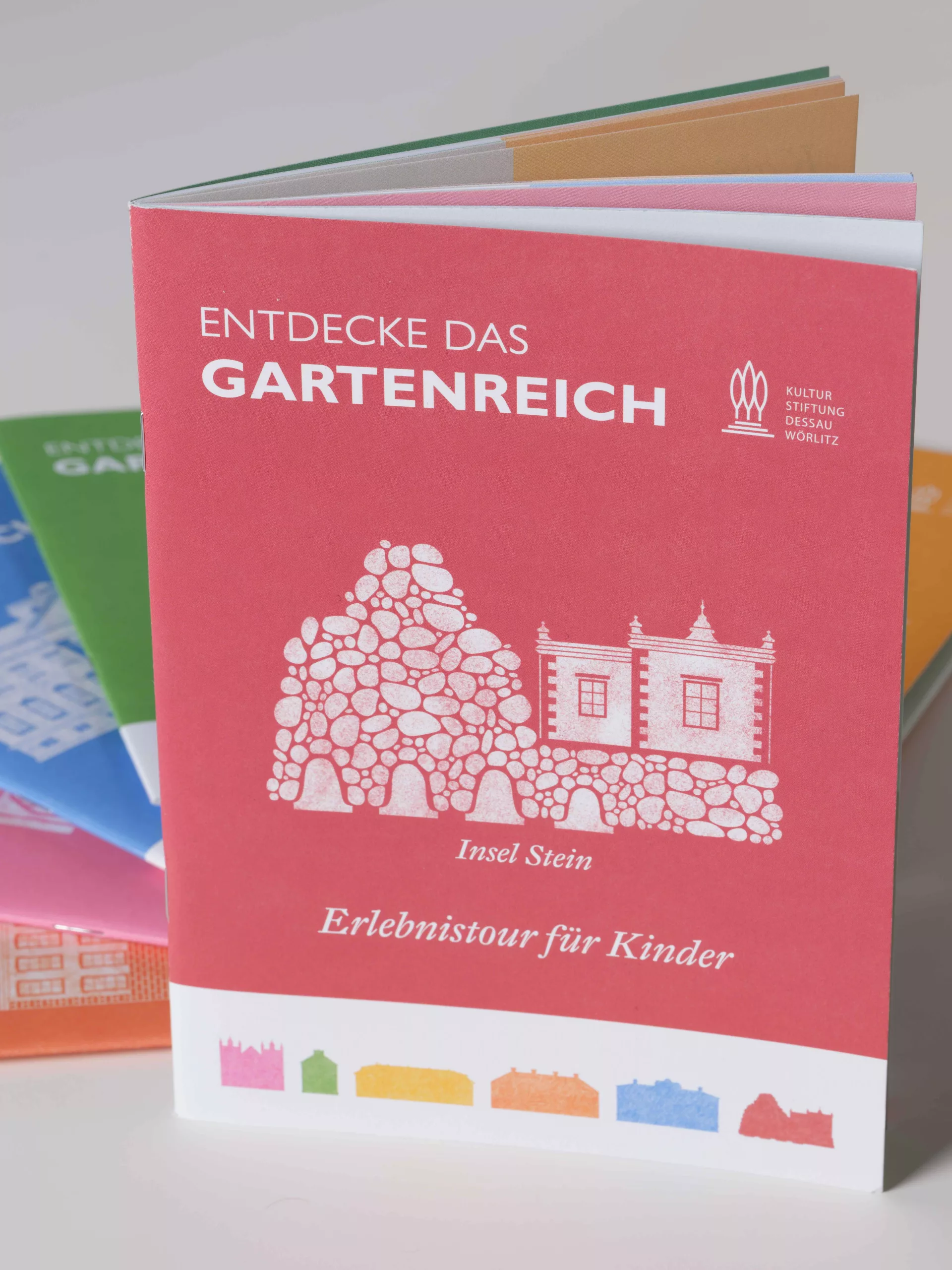 Die Insel Stein ist im Gartenreich ein ganz besonderer Ort. Mithilfe eines Entdeckerheftes ist es im Rahmen einer individuellen Tour möglich, den Ort über Bildersuchspiele, Rätsel und kleine Aktionen spielerisch in den Blick zu nehmen. Im Heft findet sich unter anderem ein spannendes Vulkan-Experiment, das zu Hause ausprobiert werden kann. Das Entdeckerheft ist für 2 Euro direkt an der Kasse der Insel Stein erhältlich. Der Eintritt auf die Insel ist nicht im Preis enthalten. Für Kinder und Jugendliche bis 16 Jahren ist der Eintritt kostenfrei.
