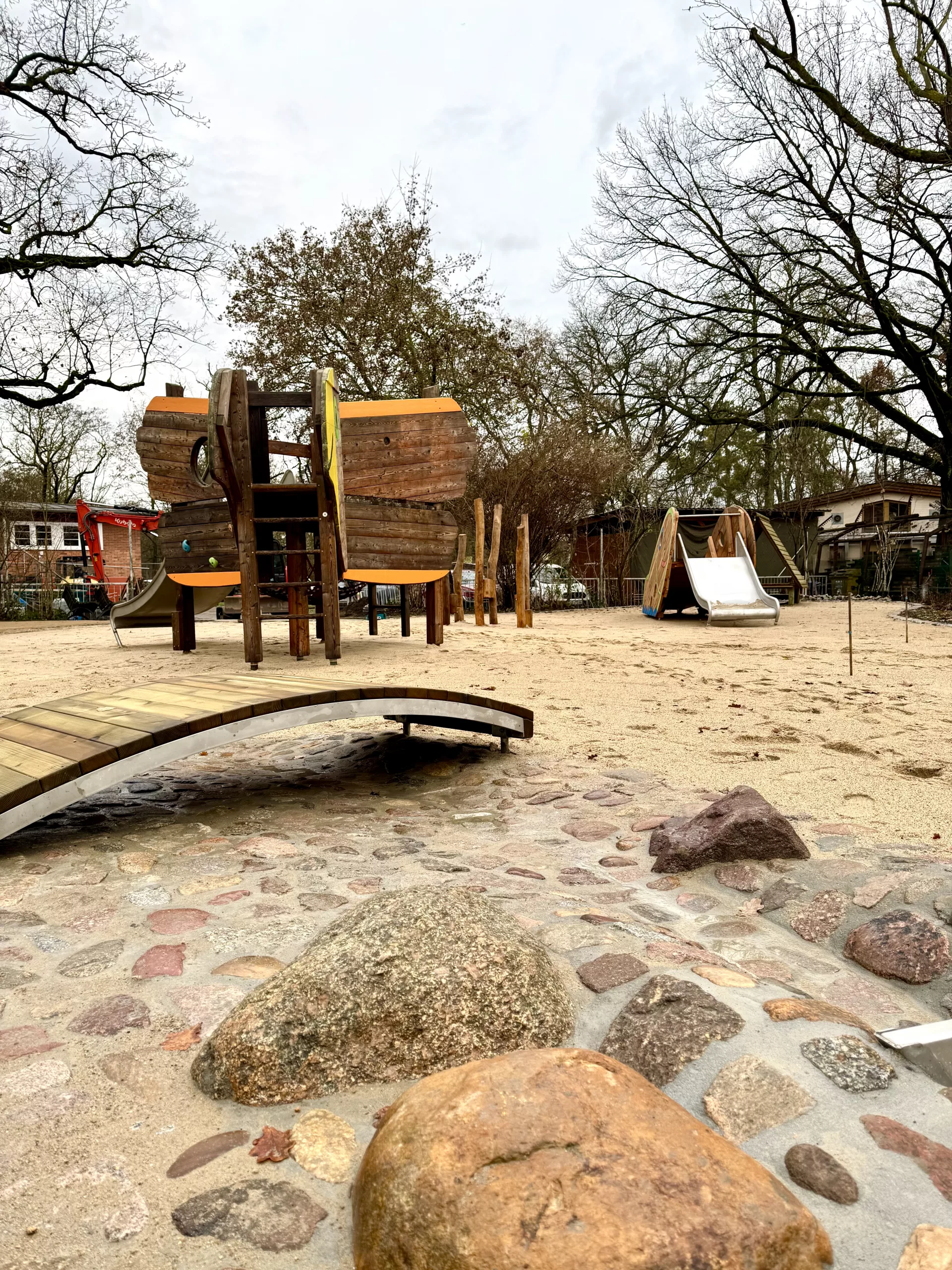 Trotz ihres großen Potentials bot die Anlage vor der Sanierung ein uneinheitliches Bild und entsprach nicht mehr vollständig den Anforderungen einer modernen Spielfläche. Mit der Neugestaltung entsteht nun eine naturnahe Abenteuerwelt, die Kinder begeistert und Familien zusammenführt. Die gesamte Anlage wurde grundhaft erneuert, vorhandene Spielgeräte instandgesetzt und farblich überarbeitet sowie vielfältige neue Spielangebote geschaffen, die sich am übergeordneten Thema „Flusslandschaft Elbe“ orientieren. Alle Spielgeräte bestehen aus Holz und sind überwiegend naturbelassen, was ein harmonisches, naturnahes Gesamtbild schafft.