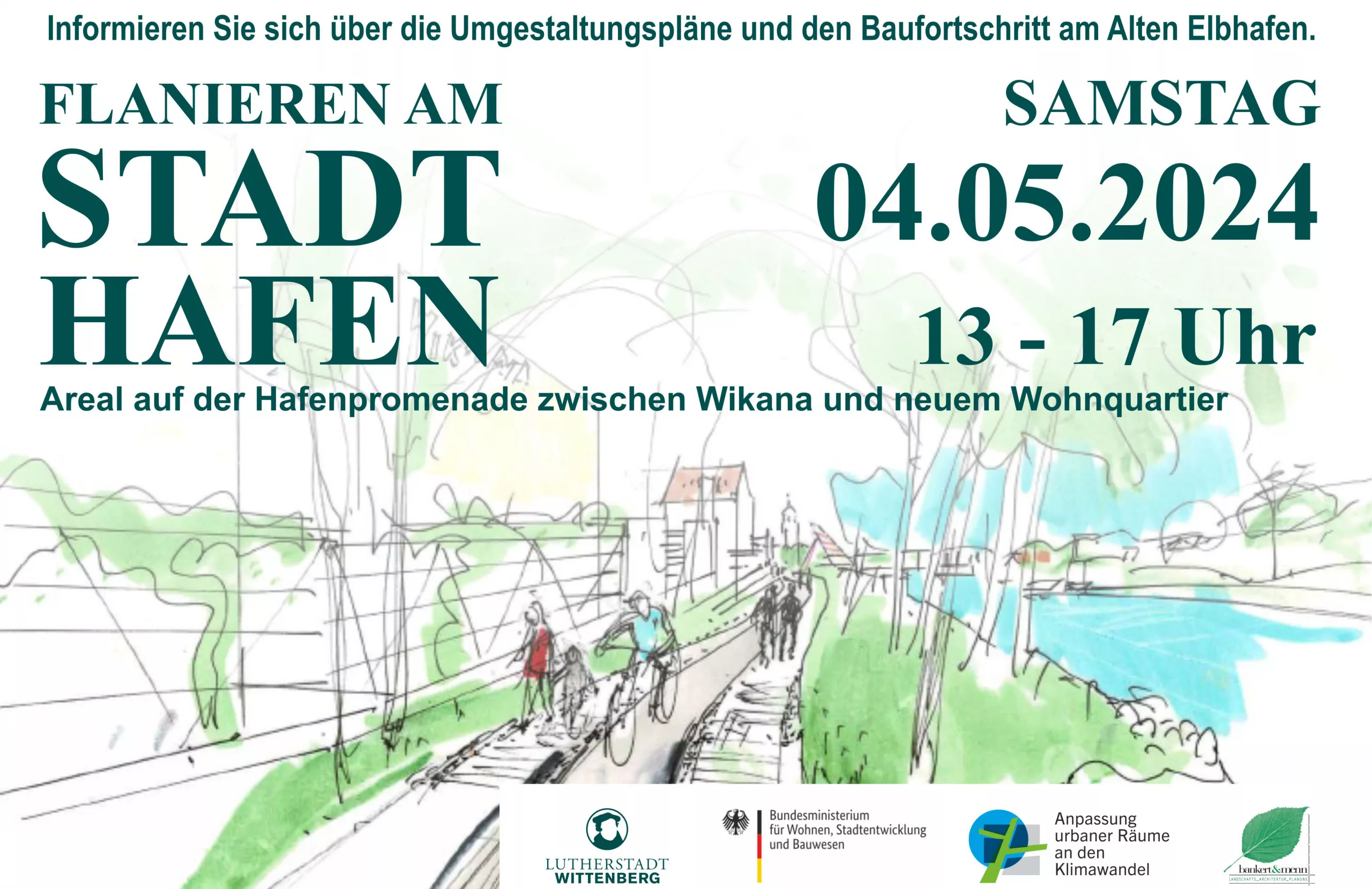 Wittenberg (md). Flanieren am Stadthafen ist am 4. Mai in der Zeit von 13 bis 17 Uhr auf dem Areal der Hafenpromenade zwischen Wikana und dem neuen Wohnquartier angesagt. „Stadt an der Elbe“: In Kleinwittenberg entsteht in den kommenden Jahren eine durchgängige Promenade bis in die Altstadt, welche sich behutsam in die Flora und Fauna des Flussufers einordnet und neue Lieblingsorte inmitten des Zusammenspiels von natürlicher und städtischer Atmosphäre für Wittenberger und Gäste schafft.