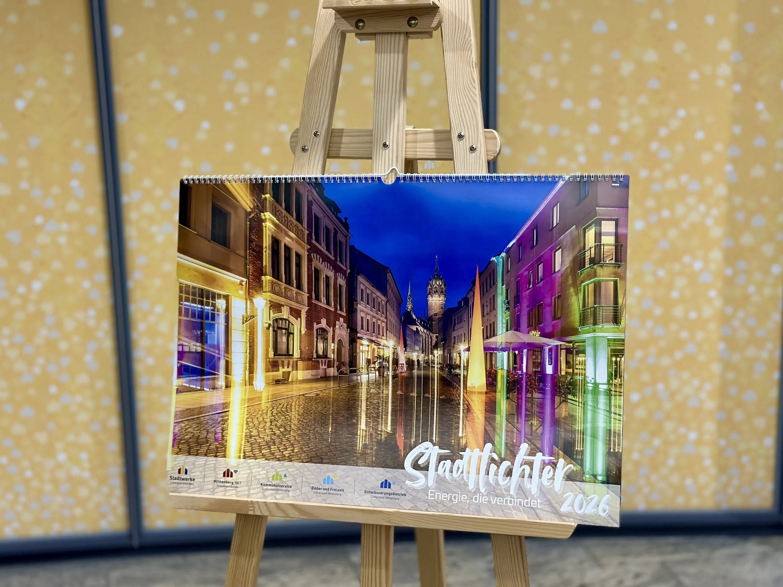 Wittenberg (md/wg). Die Stadtwerke Gruppe Lutherstadt Wittenberg präsentiert ihren neuen Kalender 2026 unter dem Titel „Stadtlichter – Energie, die verbindet“. Die diesjährige Ausgabe lädt dazu ein, Wittenberg und ausgewählte Standorte der Stadtwerke Gruppe in völlig neuem Licht zu erleben: mit fotografischen Motiven, die vertraute Orte und technische Anlagen durch außergewöhnliche Lichteffekte in etwas völlig Unerwartetes verwandeln.