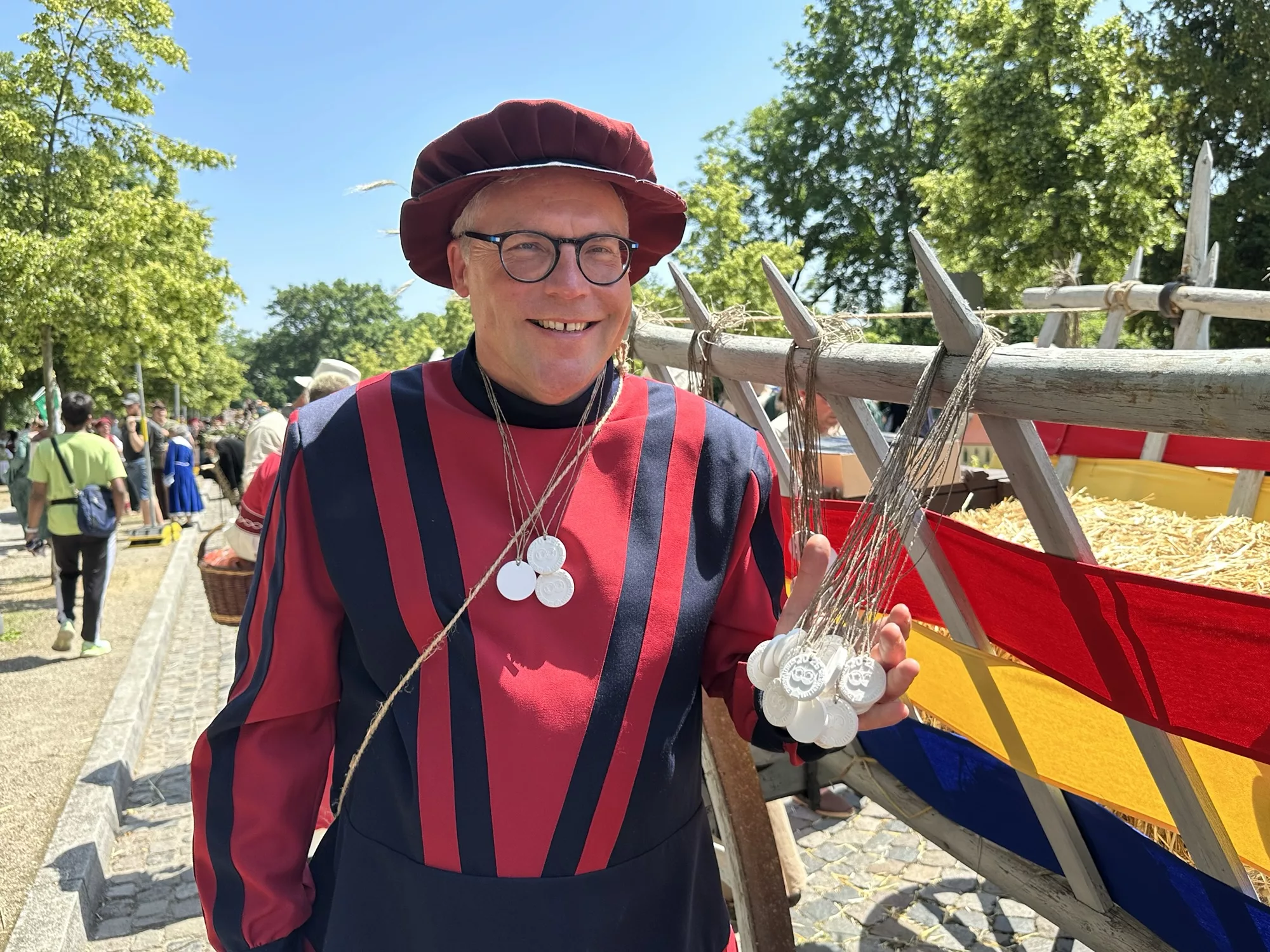 Wittenberg (aw). Ein Hauch von Nostalgie, ganz viel Handarbeit und jede Menge Begeisterung: Beim diesjährigen Festumzug zu „Luthers Hochzeit“ sorgten die Stadtwerke Wittenberg anlässlich des 500. Jubiläums der Hochzeit für eine besondere Überraschung. Historisch gewandet verteilten Stadtwerke-Chef Andreas Reinhardt und viele seiner Kolleginnen und Kollegen während des Umzuges liebevoll gefertigte Erinnerungsplaketten an die Besucher – und stießen dabei auf große Begeisterung.