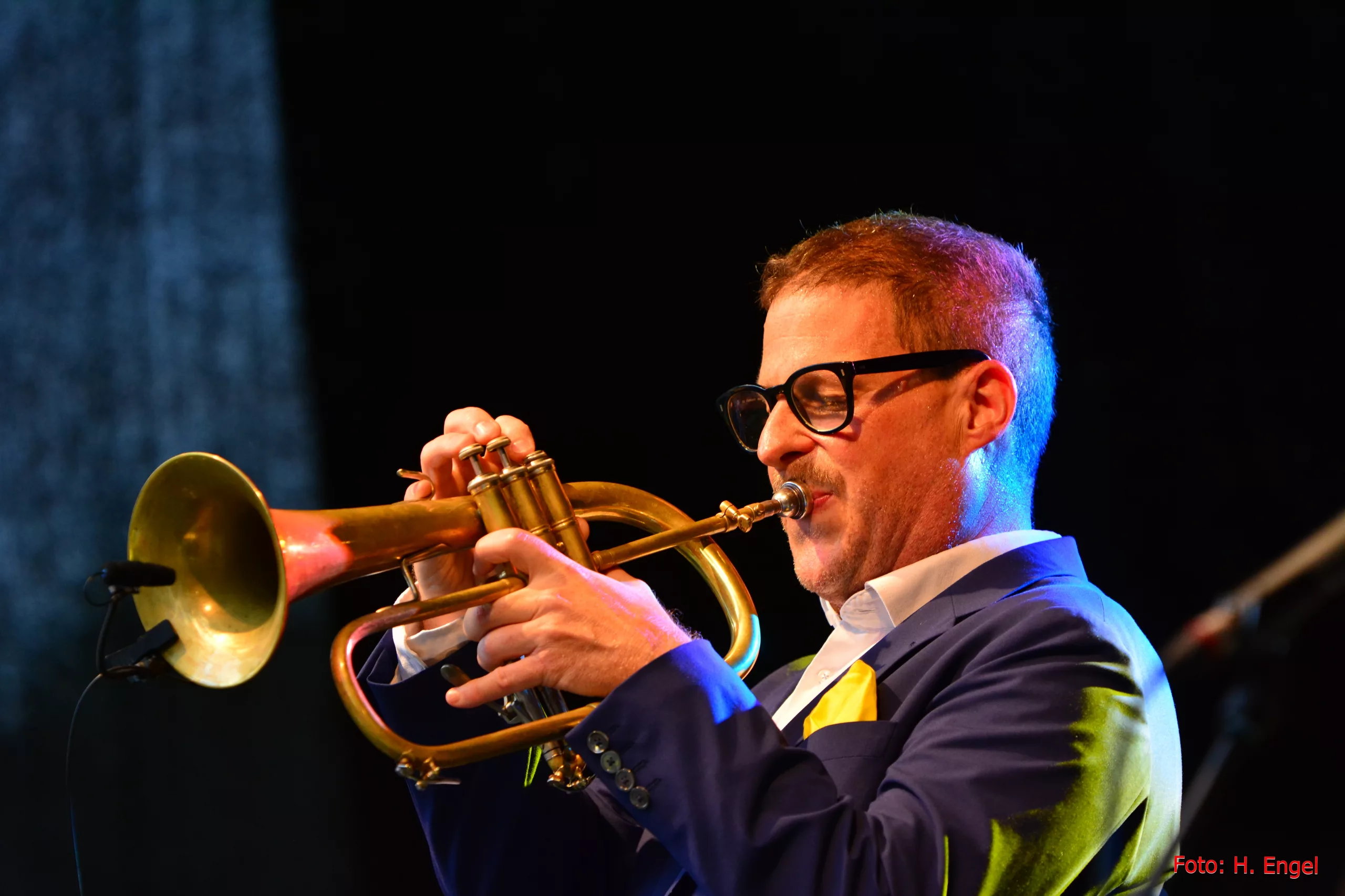 Begleitet wird Siffling von seinem langjährigen Kollegen und Freund Olaf Schönborn am Saxofon, der immer wieder durch seinen schönen Sound und sein geschmackvolles Spielen überzeugen kann. Die wunderbar swingen und groovende Rhythmusgruppe besteht aus dem Saarbrücker Schlagzeug-Professor Oliver Strauch, dem Düsseldorfer Bassisten Nico Brandenburg und dem jungen Stern am Jazzpiano Himmel, den Stuttgarter André Weiß. Foto: ©H. Engel