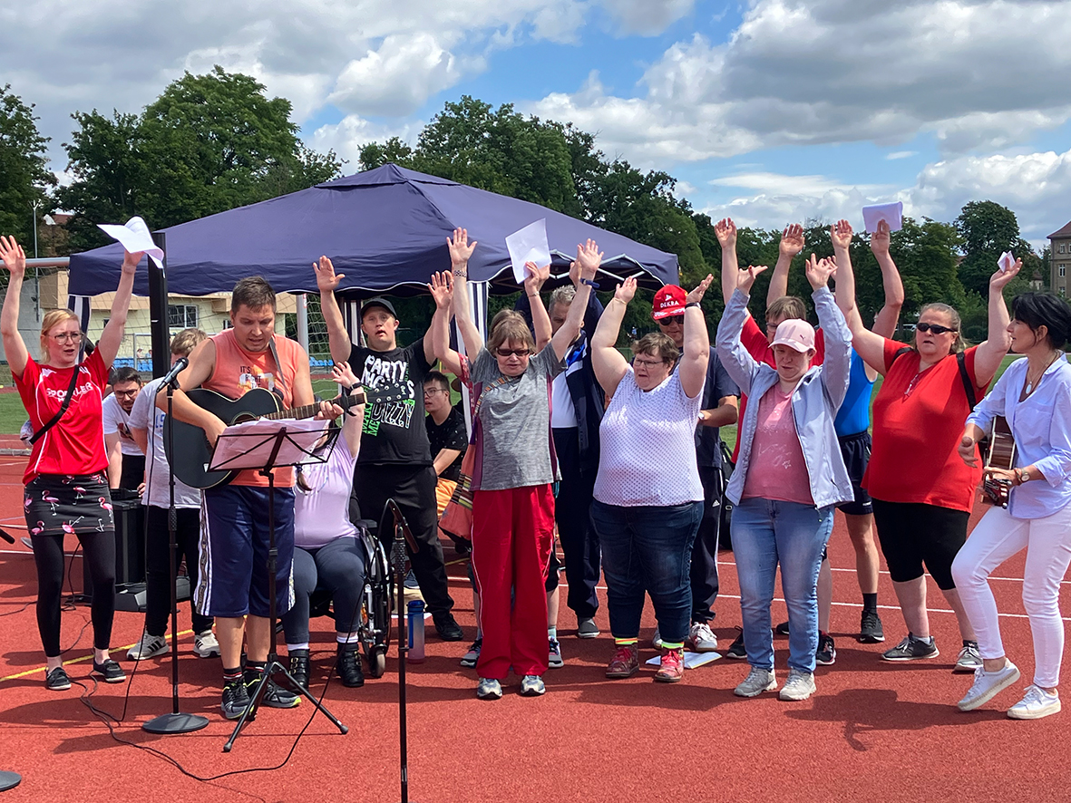 Wittenberg (cs). Für die Beschäftigten aus den Werkstätten des Augustinuswerk e.V. war der Mittwoch dieser Woche ein ganz besonderer. Bei einem Sport- und Sommerfest im Arthur-Lambert-Stadion wurde sich nicht nur sportlich betätigt, sondern es gab vor allem ein großes Hallo und der Tag war geprägt von der Wiedersehensfreude der Menschen mit Handicap untereinander. Die Pandemie hatte jahrelang derartige gemeinsame Veranstaltungen verhindert, umso größer war die Freude jetzt. Die Bedeutung der Teilhabe am gesellschaftlichen Leben und die Möglichkeit des Miteinanders betonte Matthias Monecke, Vorstand des Augustinuswerk e.V., bei der Eröffnung.