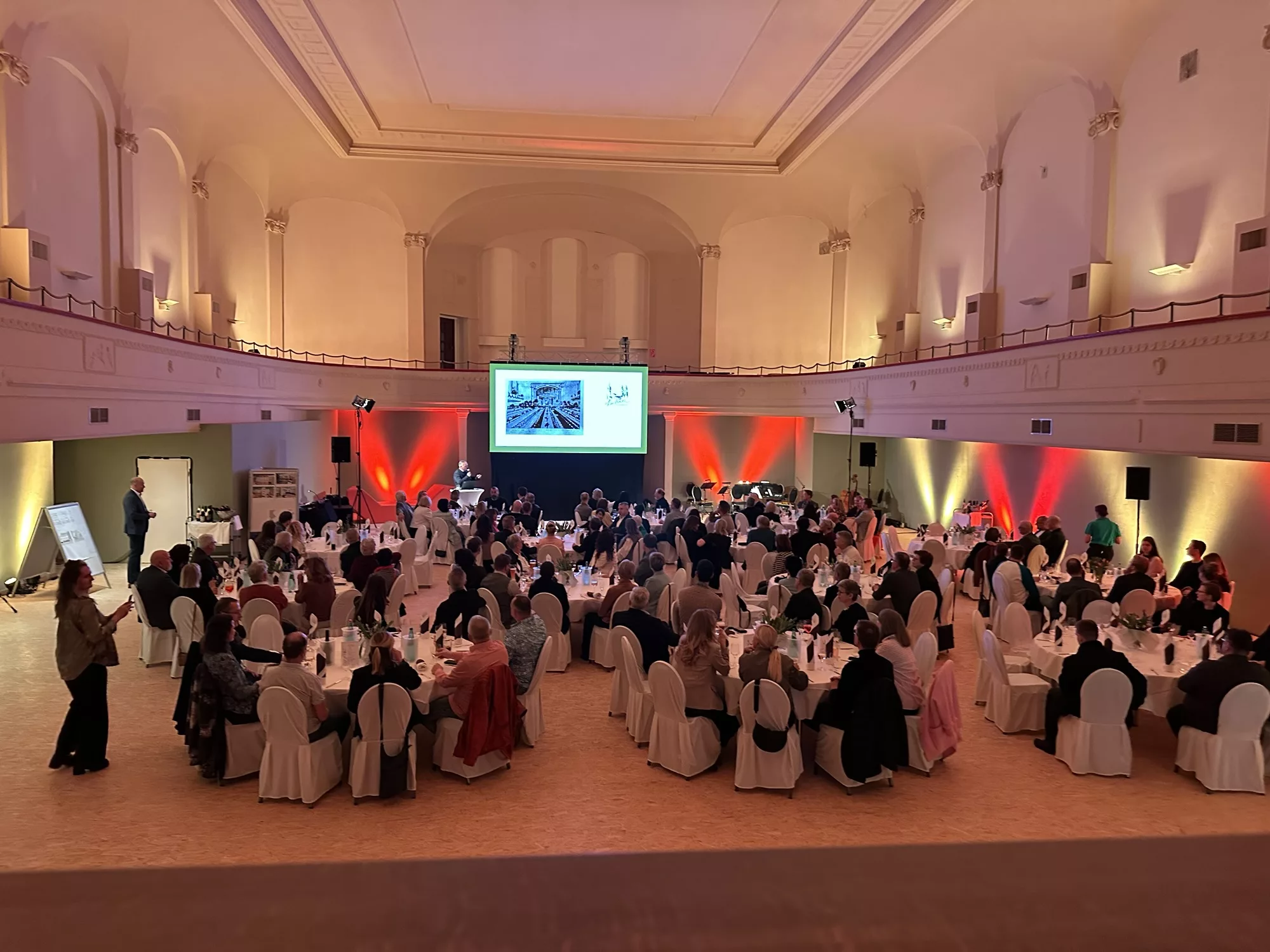Vorsitzender Thomas Popp unterbrach den Abend mit einer überraschenden Ankündigung – und öffnete kurzerhand den großen Saal der ehemaligen Balzer Festsäle. Damit wurde ein Raum erstmals wieder bespielt, den viele Wittenberger lange nur als Bowlingbahn kannten. „Ein wunderschöner Ballsaal“, so Popp, der gemeinsam mit den Gästen bei Catering und klassischer Musik die besondere Atmosphäre genoss. „Ich freue mich, dass Sie heute die Ersten sind.“