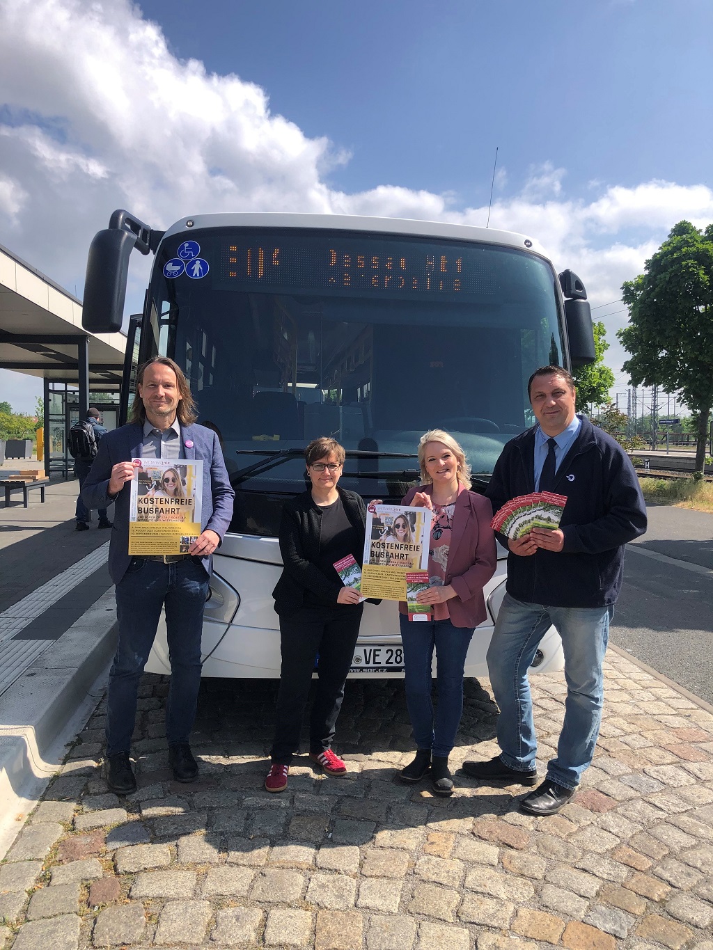 Bild: Hannes Wolf, Geschäftsführer Stadtmarketinggesellschaft Dessau-Roßlau, Ute König, Pressesprecherin Stiftung Bauhaus, Anika Kinnemann, stellvertretende Geschäftsführerin WelterbeRegion Anhalt-Dessau-Wittenberg e.V. und Sven Bormann, stellvertretender Betriebsleiter der Vetter Verkehrsbetriebe (v.l.n.r.). Foto: WelterbeRegion