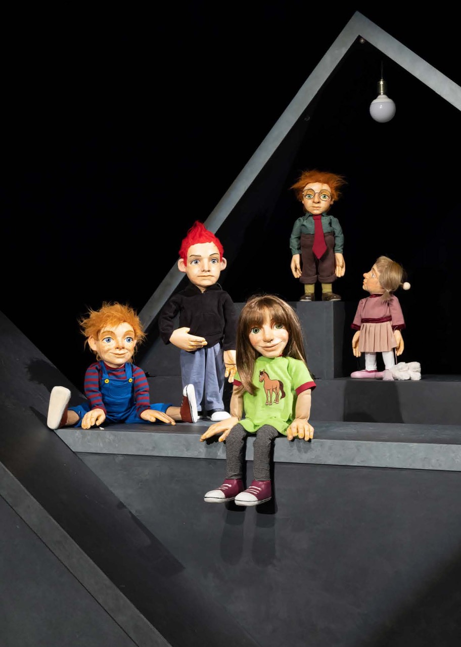 Bild: Szene aus dem Puppentheaterstück „Das schiefe Haus“. Foto: ©Claudia Heysel
