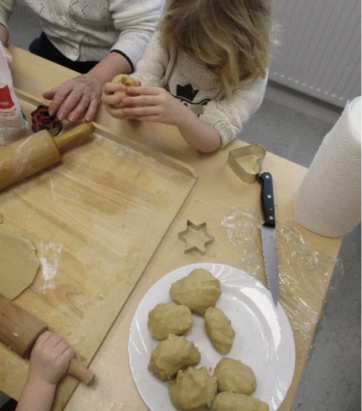 In gemütlicher Atmosphäre bereiteten die Kinder bei Kakao und Kinderpunsch verschiedene Weihnachtsplätzchen zu. Butterplätzchen und Heidesand wurden mit viel Kreativität verziert und durften anschließend mit in die Kita genommen werden.