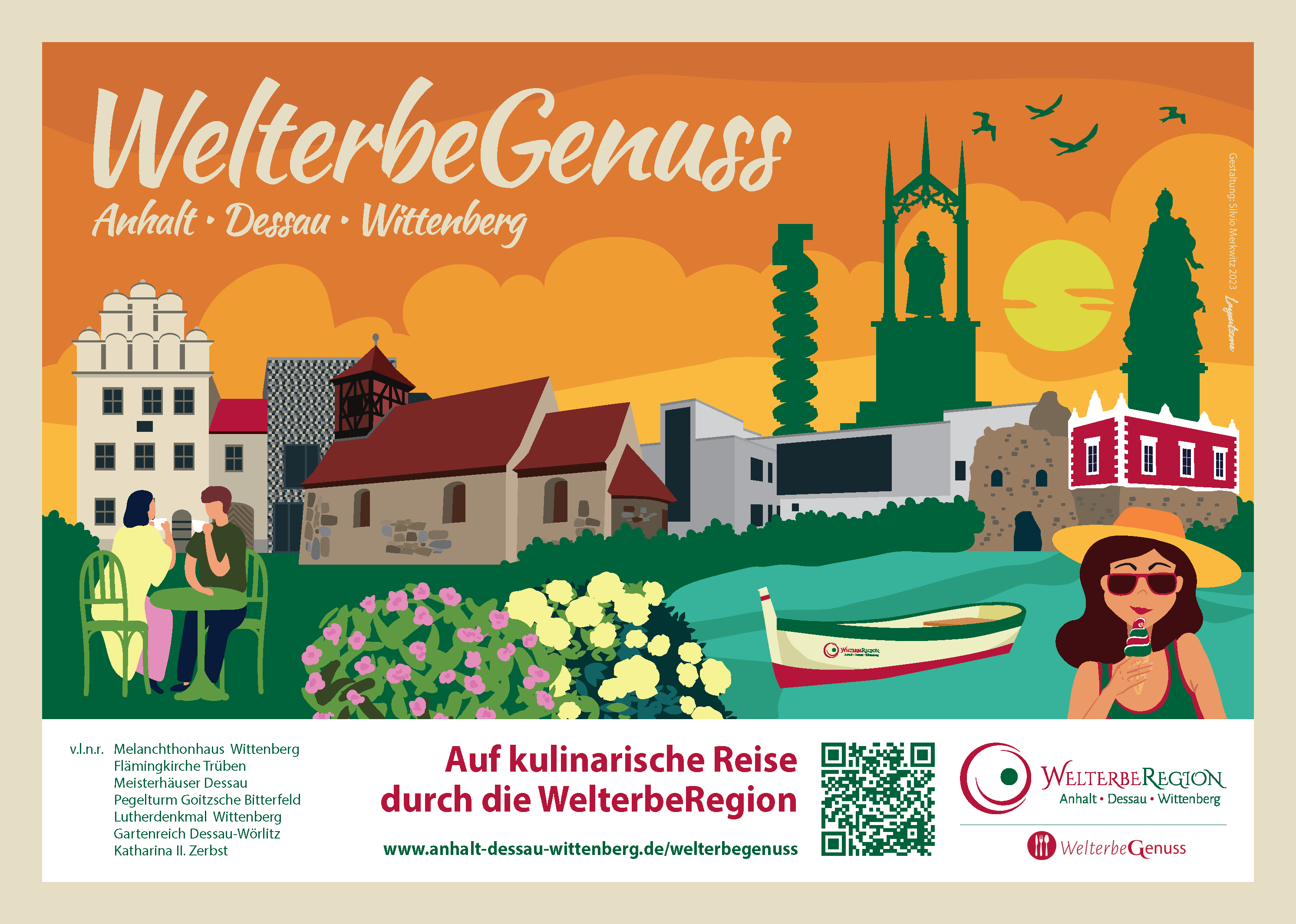 Direkt am Eingang zur Sachsen-Anhalt-Halle, am Regionalstand des WelterbeRegion Anhalt-Dessau-Wittenberg e.V. (Halle 23b, Stand 305), präsentiert der Tourismusverband seine kulturellen Höhepunkte rund um die vier UNESCO-Welterbestätten der Region sowie deren vielfältigen Freizeitangebote von WelterbeRadeln bis Urlaub am Wasser nebst druckfrischer Imagebroschüre mit dem Titel „Welterbe.Liebe“.
