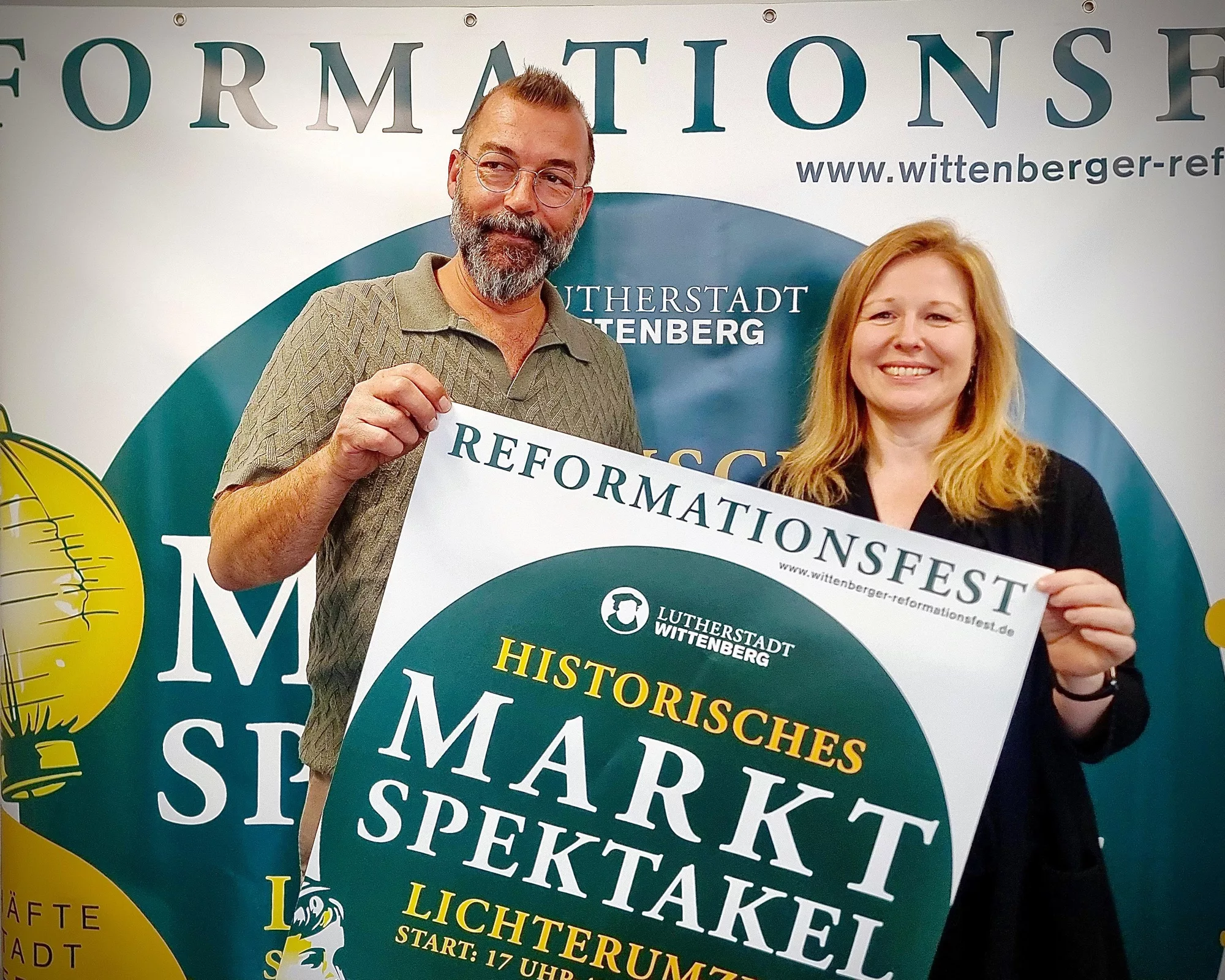 „Wir müssen Begegnungen schaffen – für alle Generationen“, sagt Denis Lehmann, Event- und Kulturmanager bei der Lutherstadt Marketing GmbH, die das Marktspektakel organisiert. Während die Kirchen das geistliche Programm gestalten, sorgt die marketing GmbH für ein lebendiges Fest. Ab 11 Uhr erwacht die Stadt zum Leben. „Das mittelalterliche Marktspektakel ist das Herzstück des Tages. Tavernen, Gauklerspiele und Musikgruppen sorgen für Stimmung. Von hier führen die Wege über die Coswiger- und die Schlossstraße zu den historischen Höfen – den Originalschauplätzen der Reformation“, erklärt Lehmann. Beliebt ist der Cranach-Hof mit Handwerk, Musik und Spezialitäten wie Honig und Keramik. Auf dem Schlossplatz können Besucher eigene Thesen verfassen – mit dabei sind Bernhard „Luther“ Naumann und Stadtherold Theodor. Wer sich vor der Thesentür fotografieren lassen möchte, kann die kostenlose Foto-Schnellbox nutzen. „Ein Souvenir, das bleibt“, erklärt Lehmann. Auf der Schlosswiese schlagen historische Vereine ihre Lager auf – ein buntes Spektakel mit Musik und Gaukelei. Auch der Weberhof öffnet diesmal: Tavernen, Tanzgruppen, Kinderschminken, ein Kinderkarussell und um 19 Uhr eine Feuershow sorgen hier bis 23 Uhr für mittelalterliche Stimmung. „Ein Höhepunkt ist das Tauziehen, bei dem Vereine gegeneinander antreten – lautstark angefeuert vom Publikum“, sagt Benjamin Böttcher vom Freundeskreis Wittenberg.