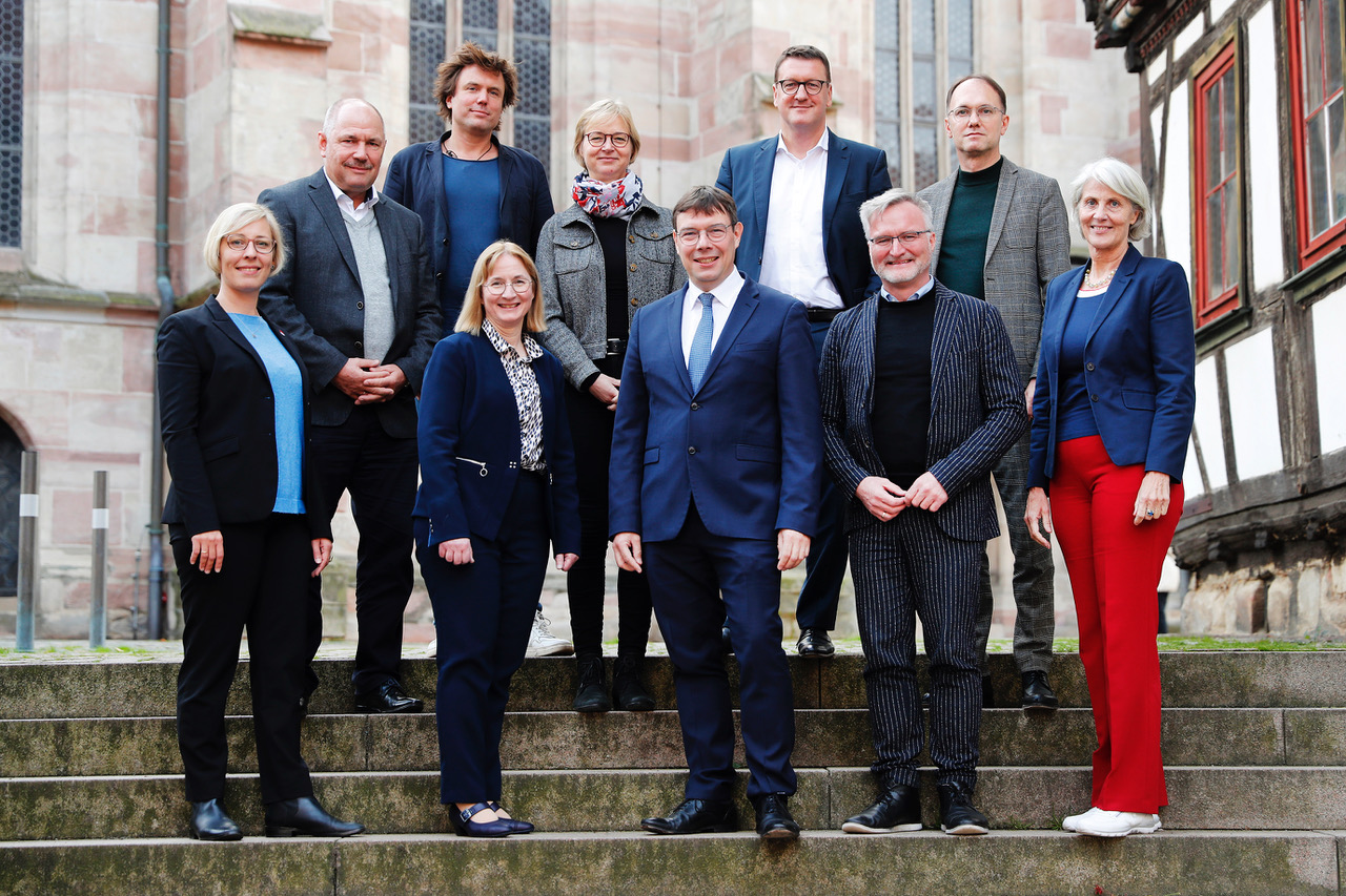 Bild: Die Jury der Lutherstädte mit Wittenbergs OB Torsten Zugehör (hintere Reihe, 2.v.r.). Foto: Stadt Schmalkalden